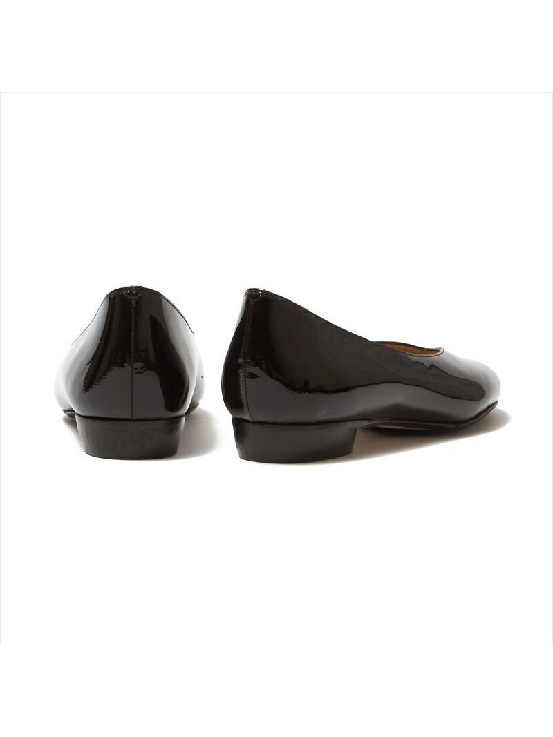Это простые туфли-лодочки с глубоким V-образным вырезом. Простой черный эмалированный цвет легко сочетается с любым случаем. Подошва выполнена из резины спереди и кожи от свода стопы до пят, что придает им элегантный вид и хорошую упругость.
