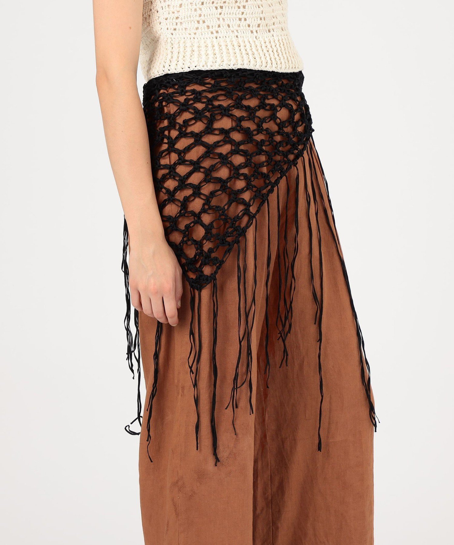 Это вязаное крючком парео украшено эффектной длинной бахромой.