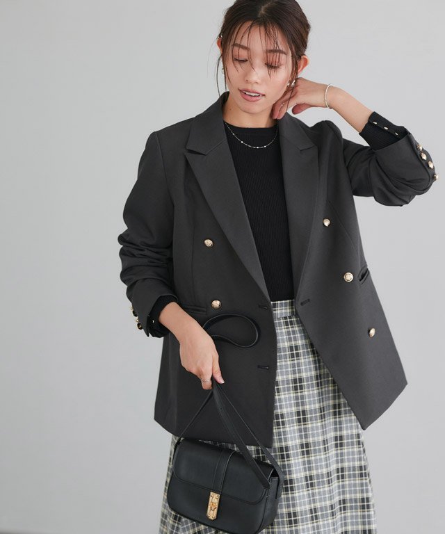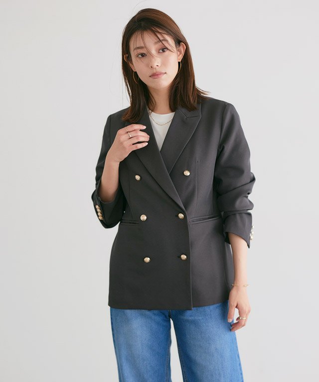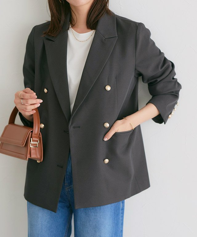 Классический пиджак, который можно носить как на работе, так и в свободное время. Двубортный дизайн и золотистые пуговицы с узором добавляют классический и модный вид. Он создает аккуратный и опрятный образ, что делает его полезным элементом гардероба. Мы также рекомендуем носить его в комплекте с брюками из того же материала.