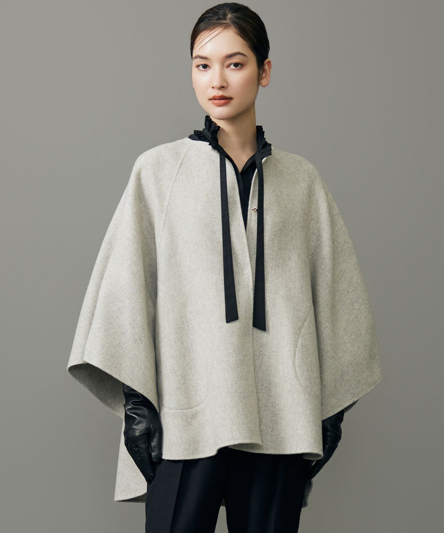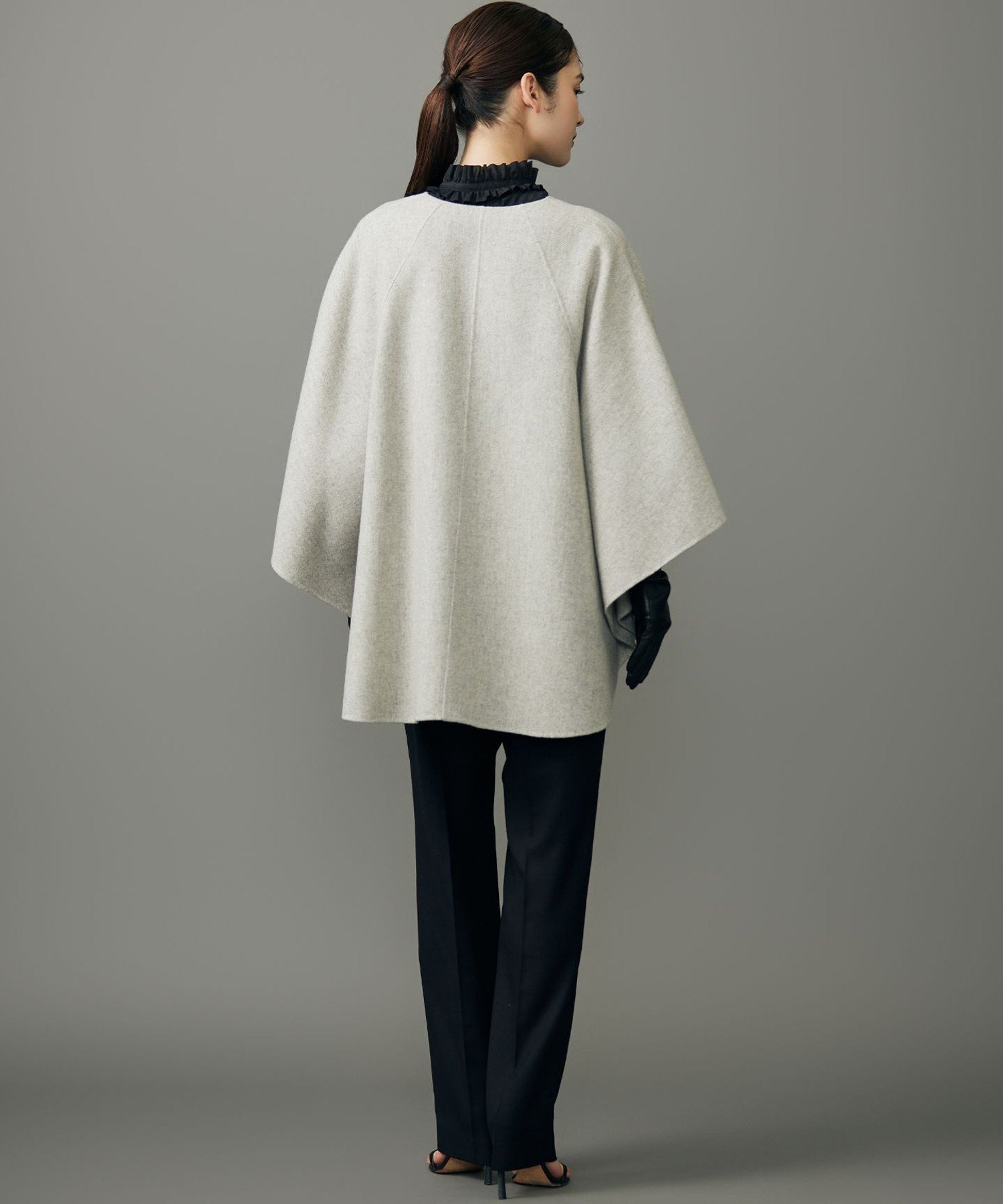Элегантное пончо с женственным дизайном. Дизайн: Это пончо имеет оптимальный объем для легкого и удобного ношения. Диагональные швы, напоминающие рукава реглан, создают женственный образ. Карманы выполнены в виде швов. Передняя и задняя части немного отличаются, что позволяет легко сочетать его как с юбками, так и с брюками. Застежка спереди – крючок и петля. Изготовлено из легкого ребристого материала, ребристая структура создает элегантный вид. Материал: Этот ребристый материал для пальто изготовлен из смеси кашемира плотностью 16 нитей на дюйм. Тонкая пряжа и добавление кашемира делают его легким и мягким, а двусторонняя меланжевая отделка добавляет блеск. Насыщенный цвет верхней пряжи создает ощущение высокого качества материала.