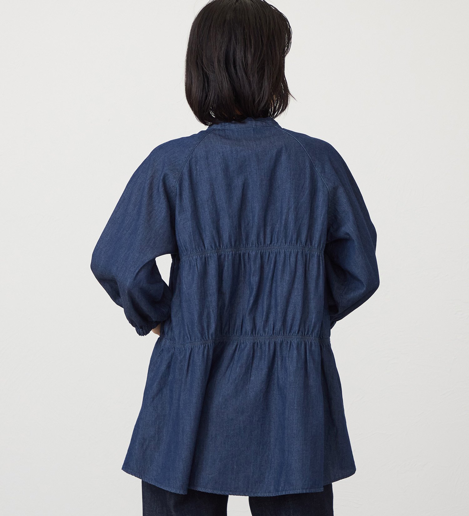Объёмные рукава и многоярусный дизайн создают стильный образ, поэтому сочетайте её с простыми брюками с пятью карманами для по-настоящему модного образа. Мы также рекомендуем носить её расстёгнутой спереди как лёгкую куртку. Она хорошо сочетается с различными вариантами низа, что расширяет ваши возможности в гардеробе.