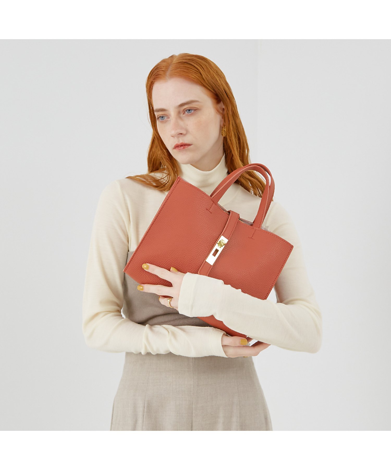 Сумка с простым цветовым оформлением, подчеркивающим элегантные металлические детали.
