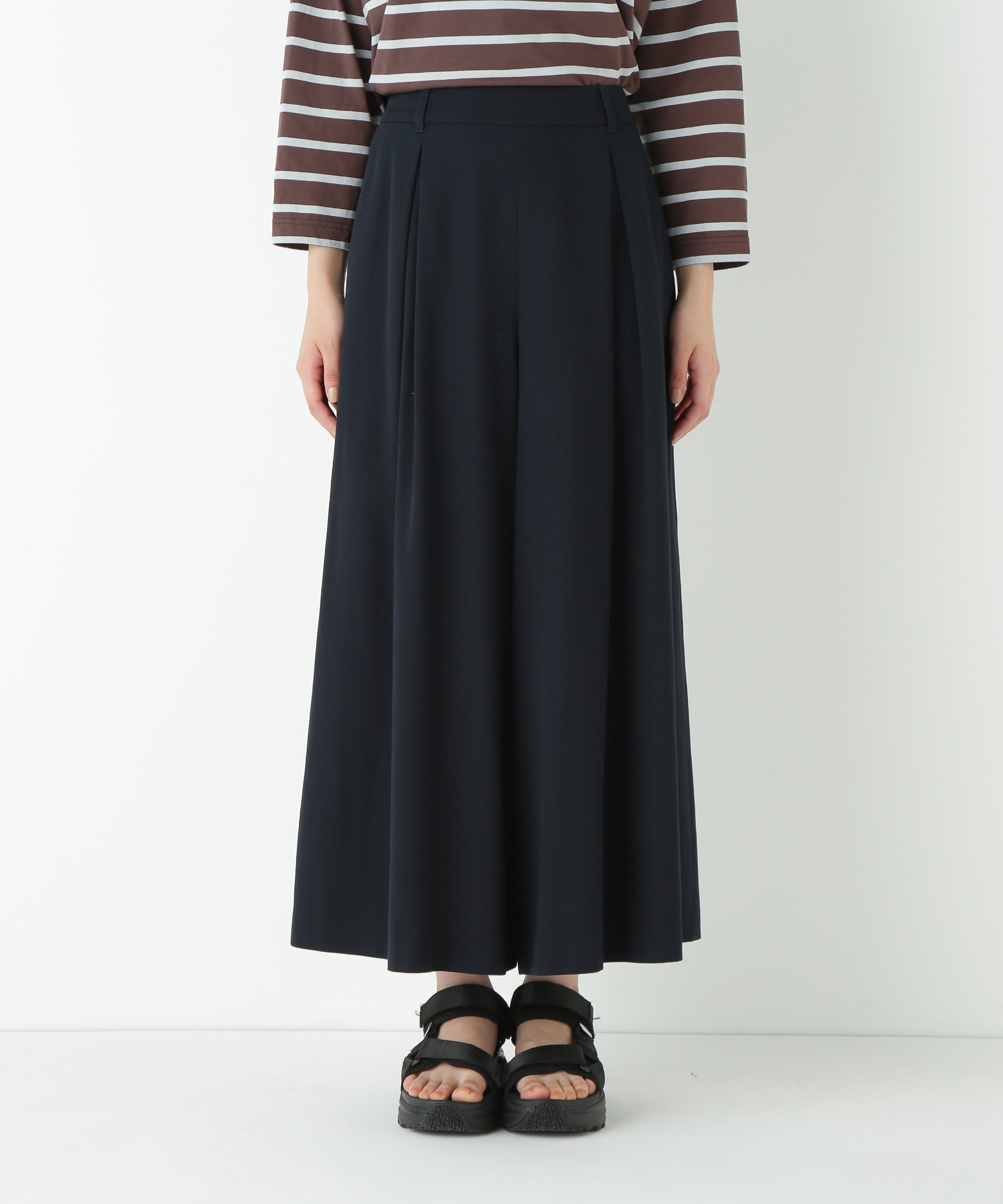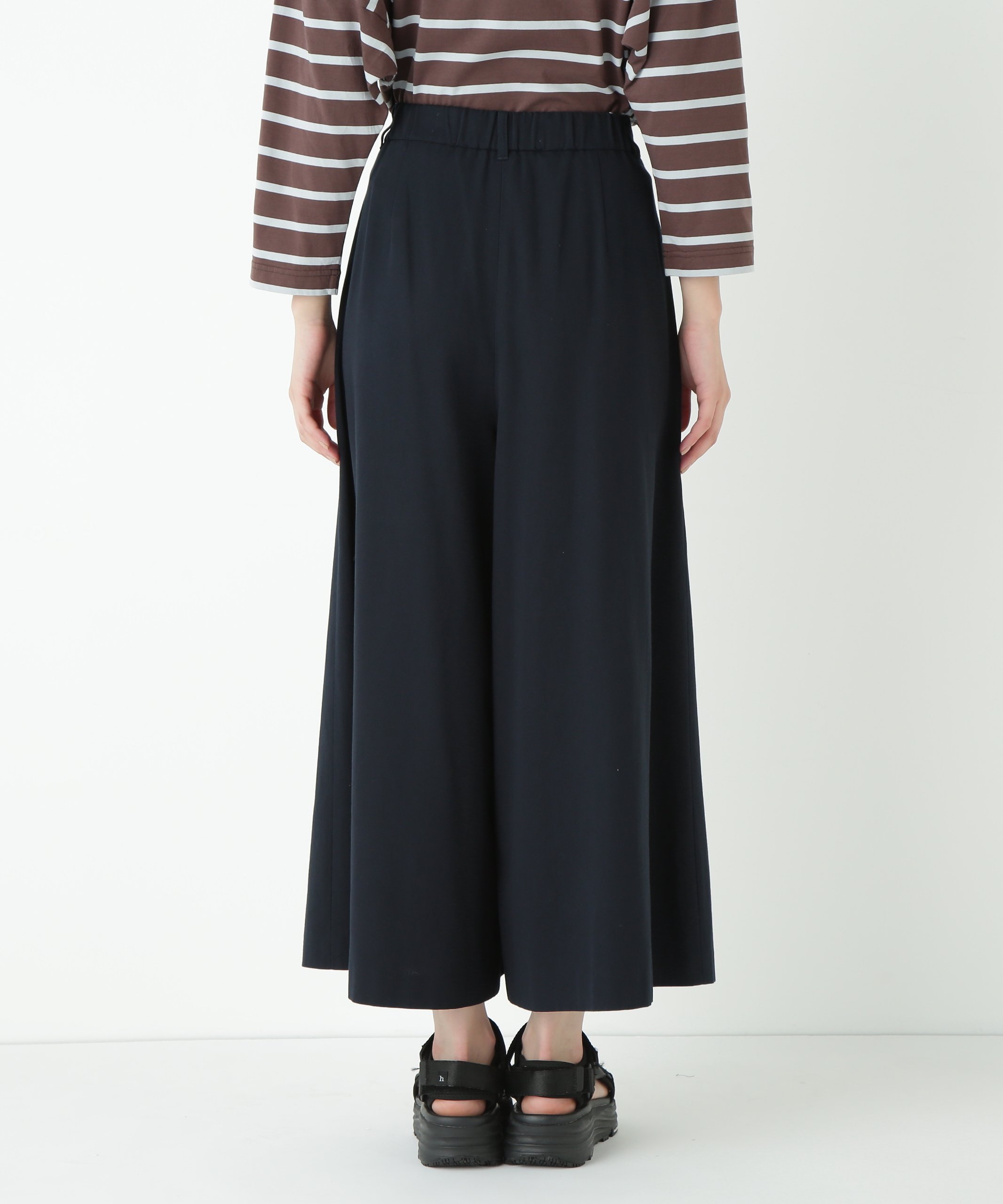 Эти кюлоты имеют складку спереди, что подчеркивает свободный крой материала.
