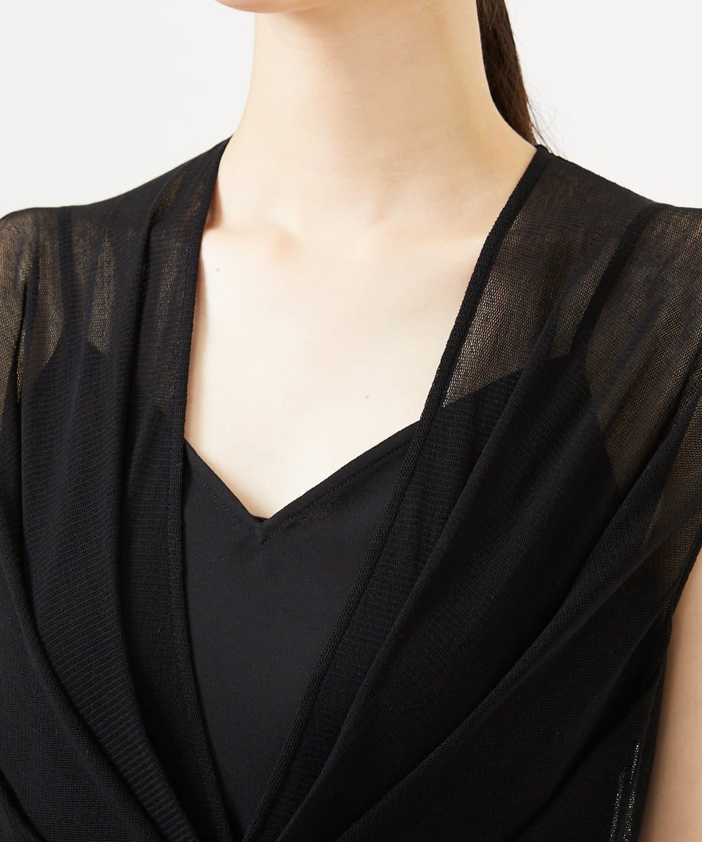 Тюлевое платье надето поверх нижнего платья, которое можно носить отдельно, что создает контраст прозрачности.