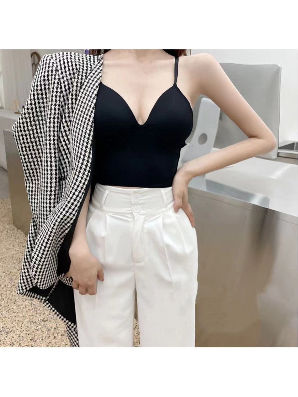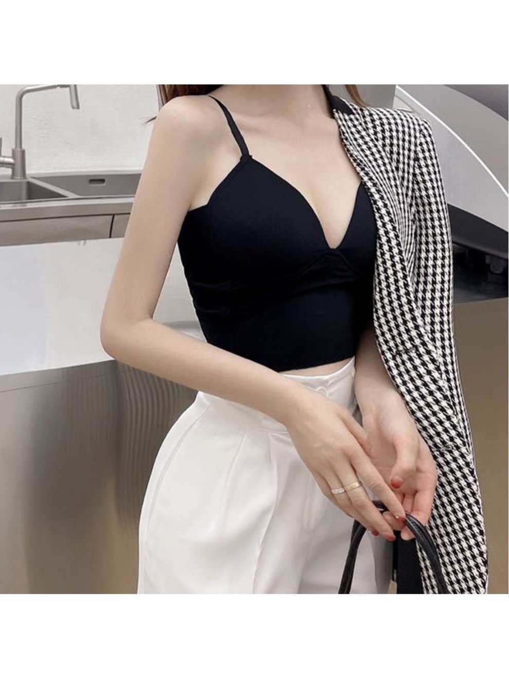 Женский топ-бюстгальтер с V-образным вырезом, без косточек, популярный, укороченный. Милый, в стиле корейского декольте, однотонный, сексуальный.