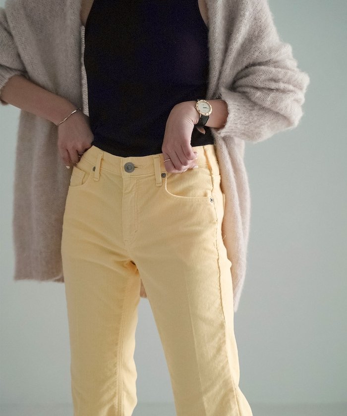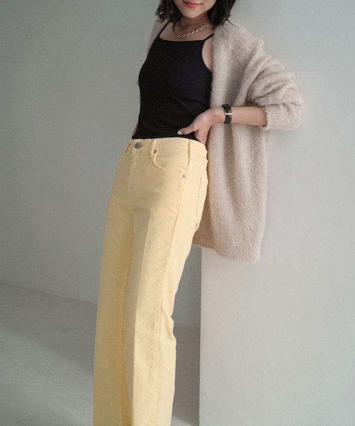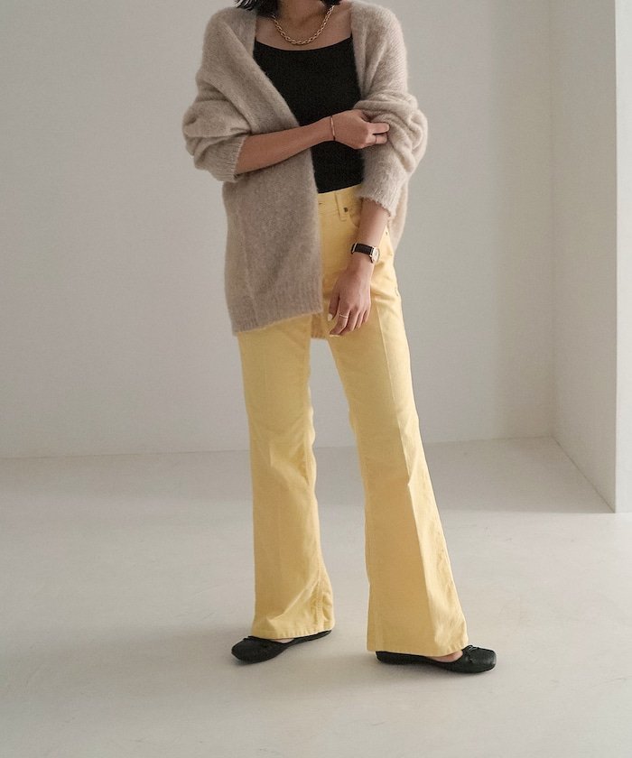 Модель сезона осень-зима 2022 Главная особенность — цветной вельвет, эксклюзивно представленный в FREAK'S STORE! Брюки, визуально удлиняющие ноги, с мягким расклешенным силуэтом●Колени расположены выше, а расклешенный силуэт, расширяющийся от колена до низа, делает ноги визуально длиннее и отлично подходит для создания красивых ног●Мягкий расклешенный силуэт не слишком велик, поэтому мы рекомендуем эту пару даже тем, кто впервые носит расклешенные брюки●В этом сезоне, когда яркие вещи в моде, мы выбрали пастельные тона для вельвета, который идеально подходит для осени и зимы●Тонкая ребристая структура создает впечатление плотного вельвета, а этот легкий вельвет — оригинальный материал, эксклюзивный для Something●Он не растягивается и меньше линяет, чем обычный вельвет, поэтому прослужит дольше и будет выглядеть лучше●Несмотря на узкий силуэт, он чрезвычайно эластичен и равномерно Удобнее, чем кажется! ●Этот предмет одежды добавит модный штрих, просто включив его в свой образ.Рекомендуемое сочетаниеЭтот предмет одежды следует сочетать с другими вещами, делая акцент на цвете.Сочетайте топ с вещью приглушенного цвета, идеально подходящей для осени и зимы, для создания элегантного, повседневного образа.Подчеркните деликатные зоны, такие как декольте и запястья, или немного кожи, чтобы создать расслабленный стиль. Ключ к созданию женственного образа — комфортный материал, такой как вельвет.Этот предмет одежды рекомендуется для осенне-зимних цветовых решений.*Этот товар представлен в цвете, который контролируется нашей компанией, поэтому отображаемый цвет может отличаться от цвета, указанного на бирке.