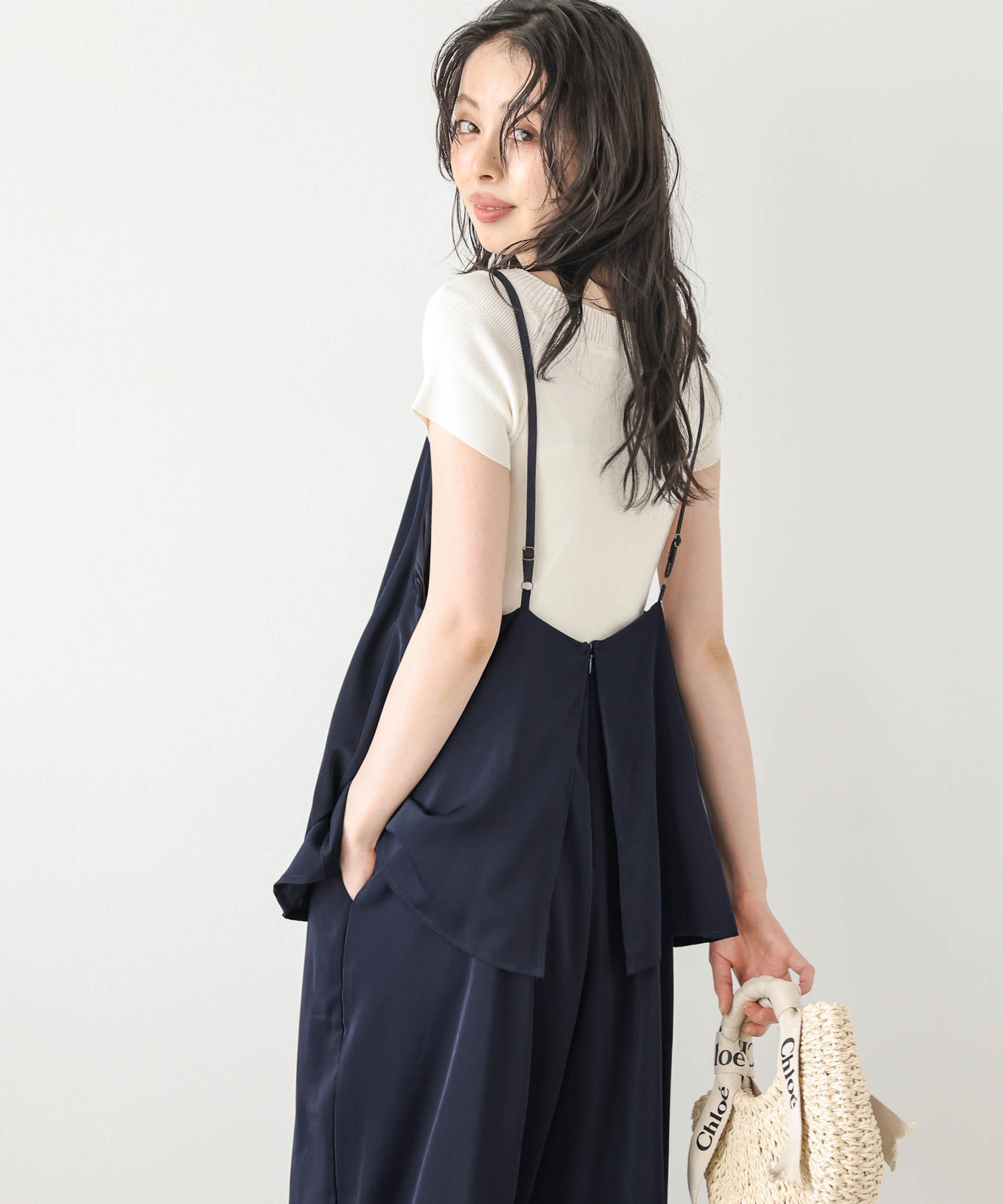 Этот комбинезон сочетает в себе расклешенную майку и струящиеся широкие брюки. Это цельный предмет одежды, который мгновенно дополнит ваш образ. ◎