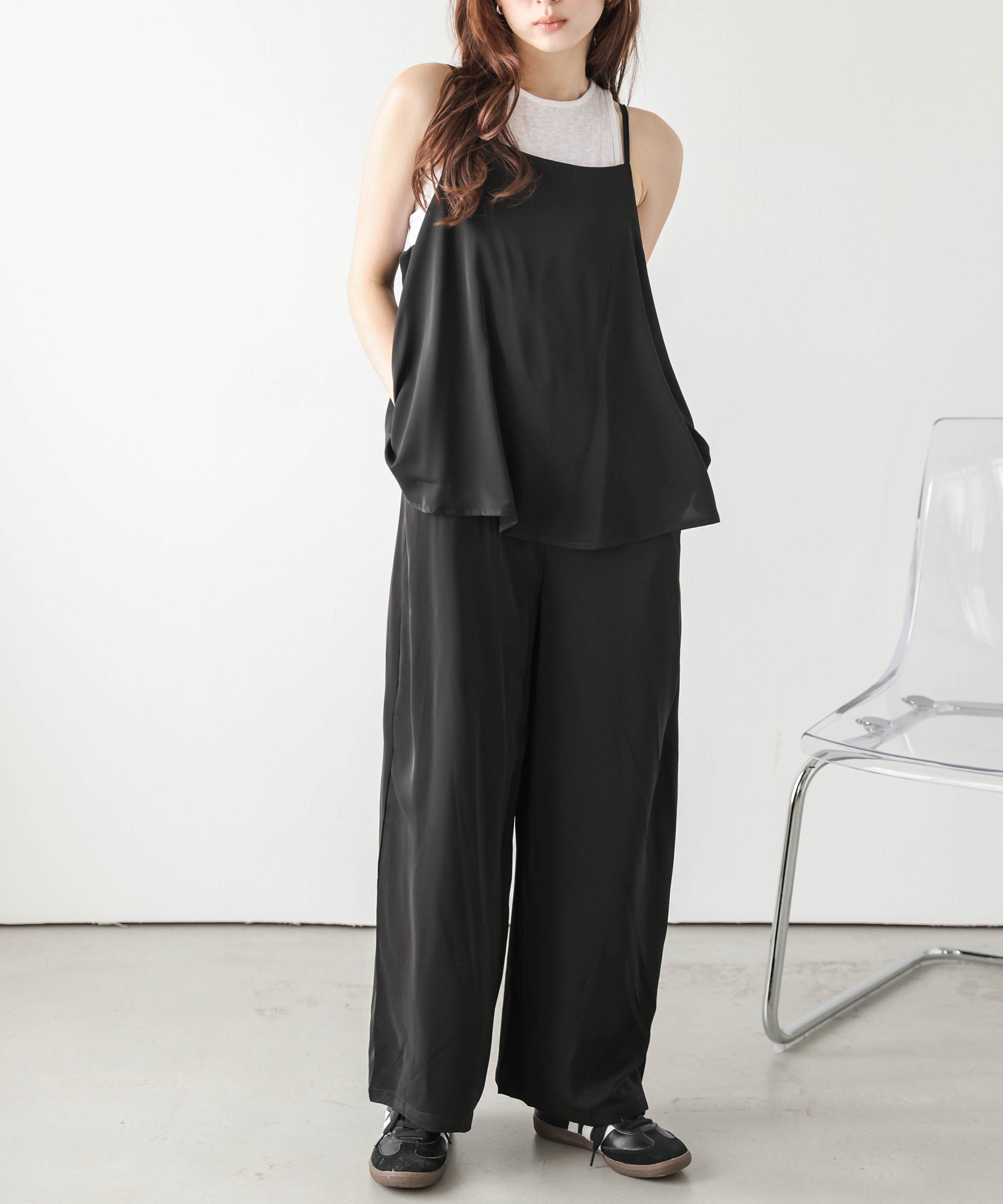 Этот комбинезон сочетает в себе расклешенную майку и струящиеся широкие брюки. Это цельный предмет одежды, который мгновенно дополнит ваш образ. ◎