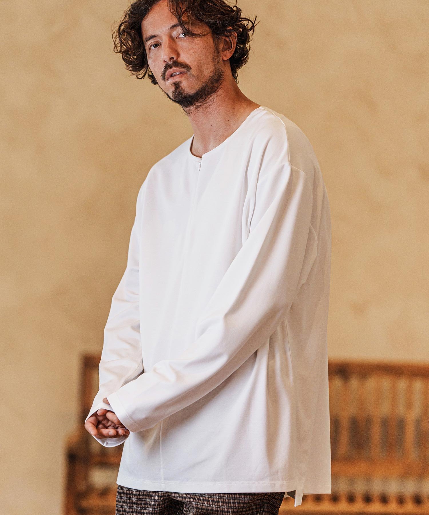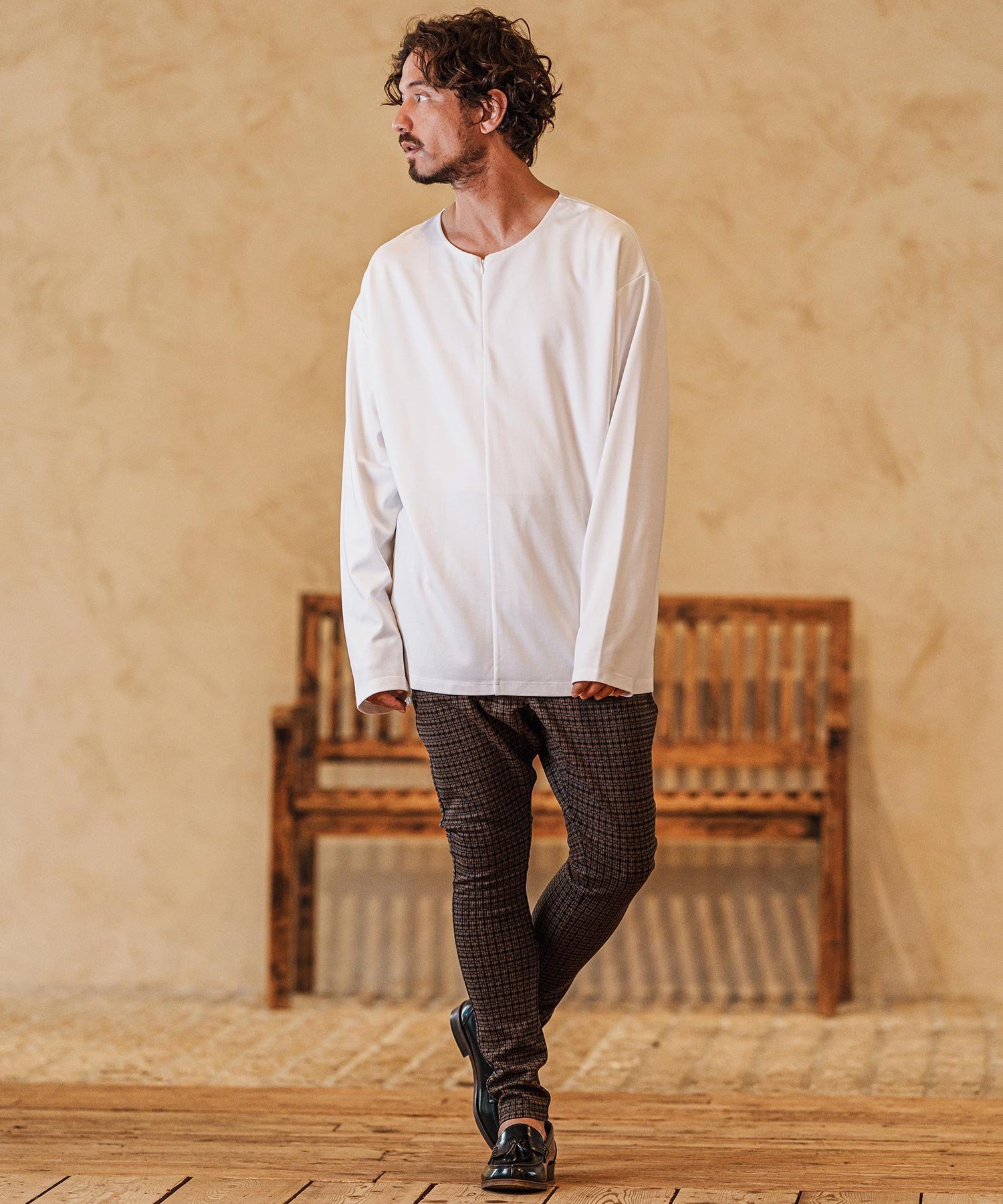 Классический вырез «Хенли» выполнен с пуговицами на шее, но в этой модели он дополнен молнией для более элегантного вида.