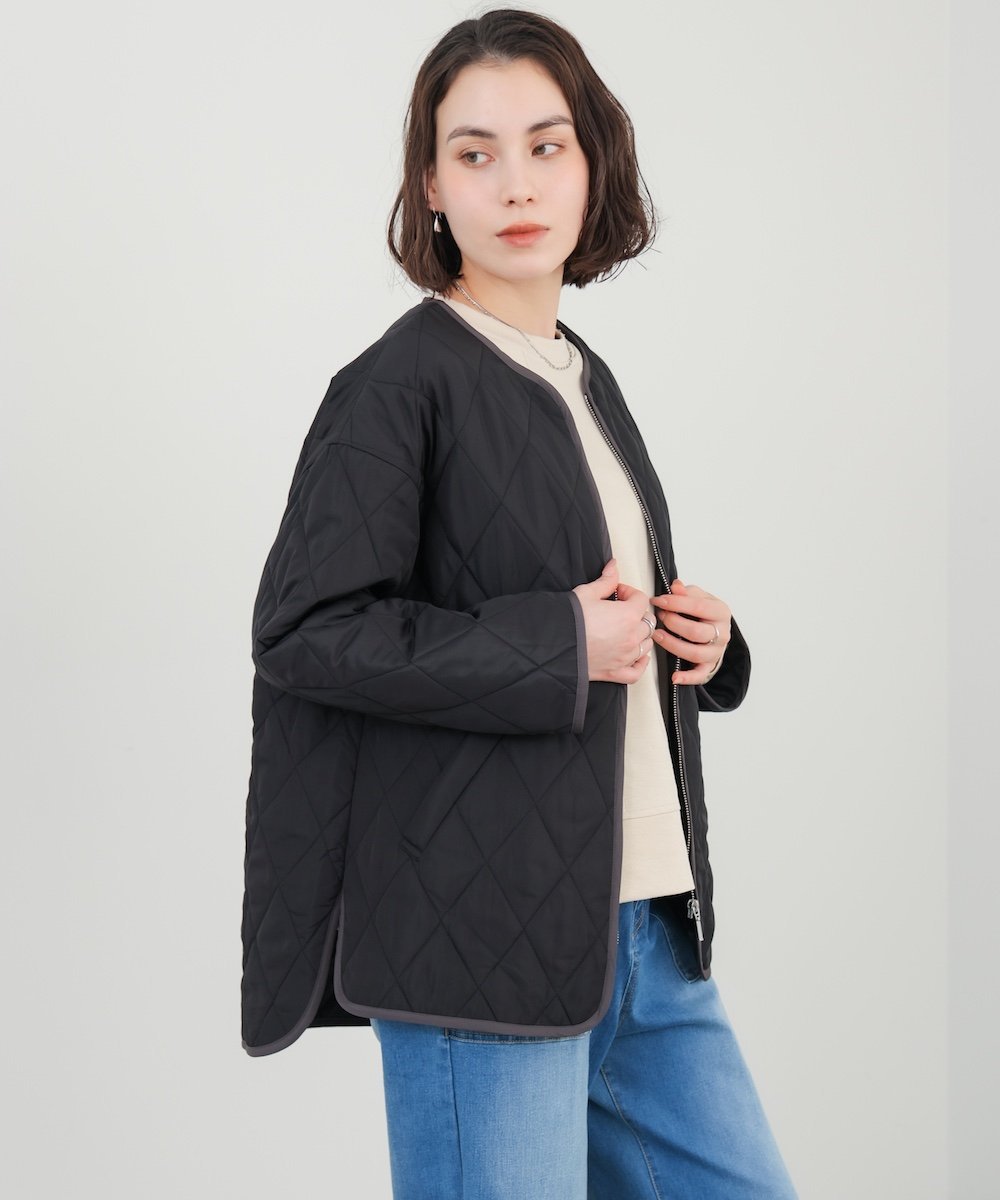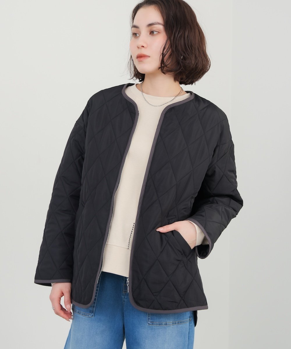 ПРЕДМЕТУдивительно легкая для изделия с наполнителем, а ее комфорт не создает напряжения в плечах. Контрастная окантовка подчеркивает вертикальные линии, создавая в целом чистый и аккуратный вид. V-образный вырез делает декольте аккуратным и четким, создавая выразительный образ. Сочетайте ее с водолазкой или блузкой для сбалансированного образа, завершающего изысканный, но не слишком повседневный стиль.