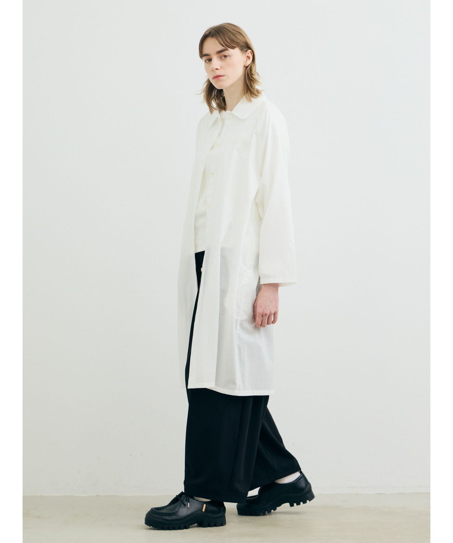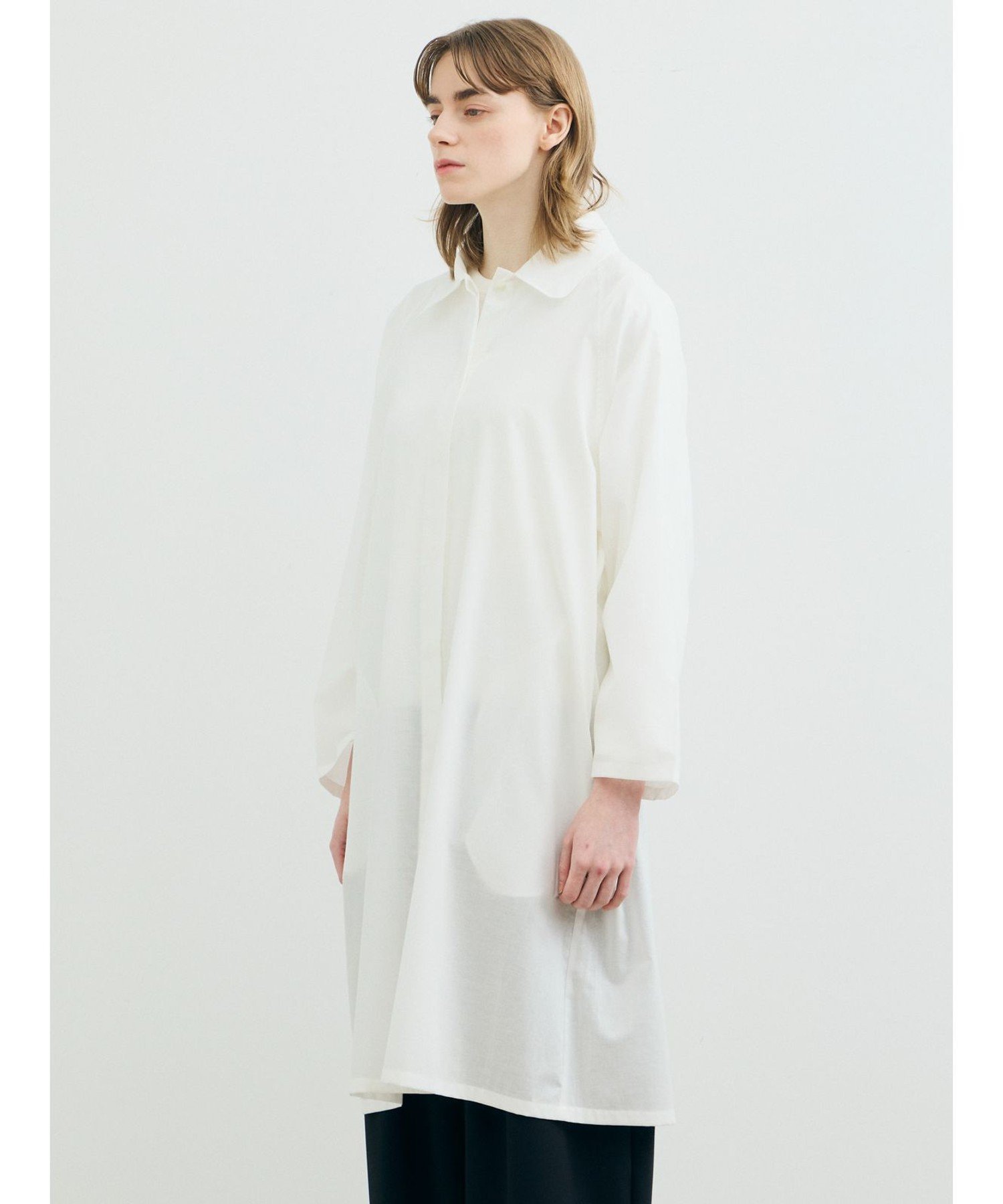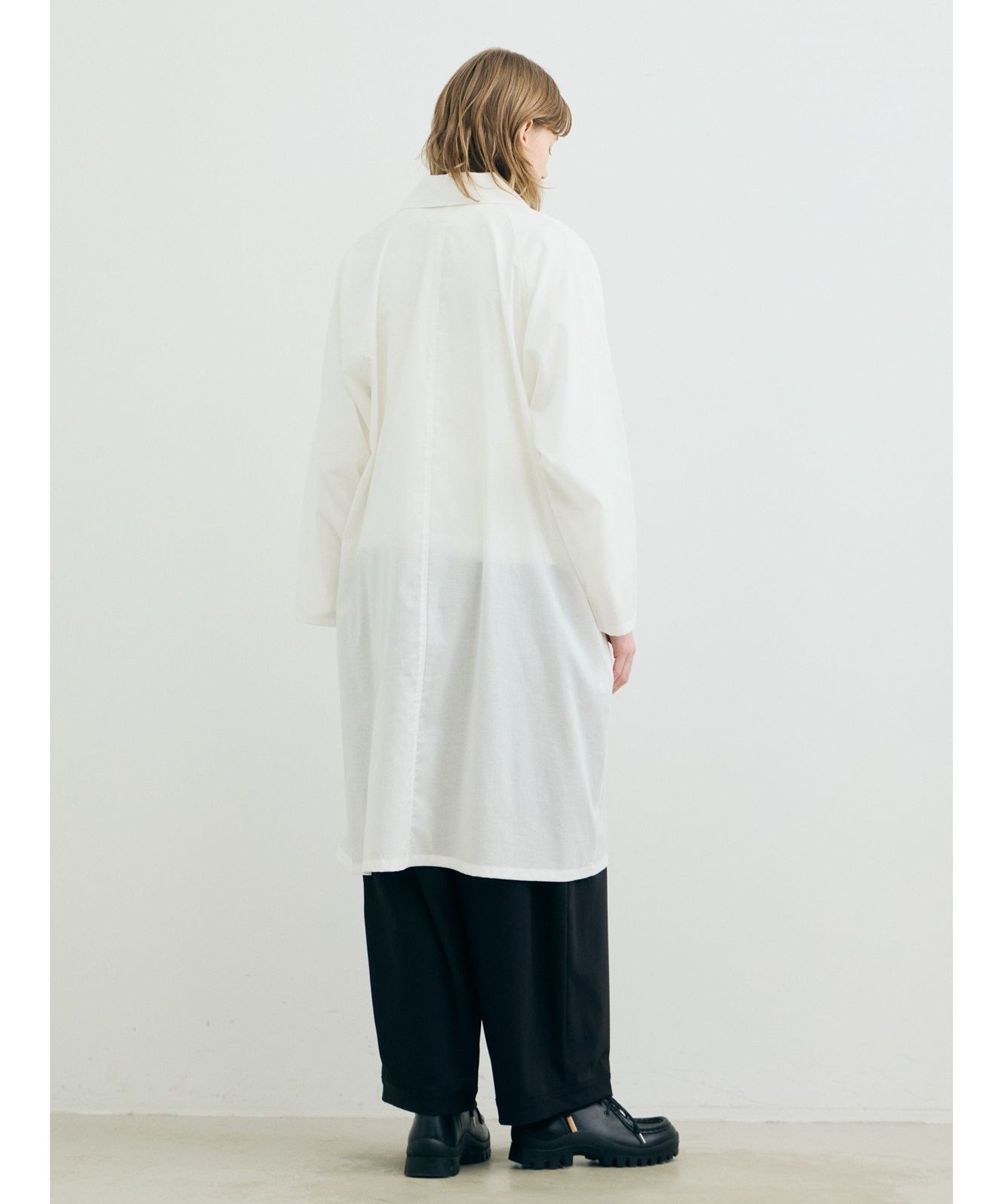 Эта рубашка-пальто сшита из легкой ткани типа «батист» 60-х годов с синтетической текстурой. Рукава реглан и мягкая ткань создают изысканный образ, не делая его слишком повседневным. Быстросохнущая, приятная на ощупь ткань делает ее идеальной для весны и лета. Она также отлично смотрится с расстегнутой передней частью и закатанными рукавами для создания объемного силуэта. Скрытая планка добавляет лаконичный, базовый штрих, делая ее идеальной вещью для перехода между сезонами.
