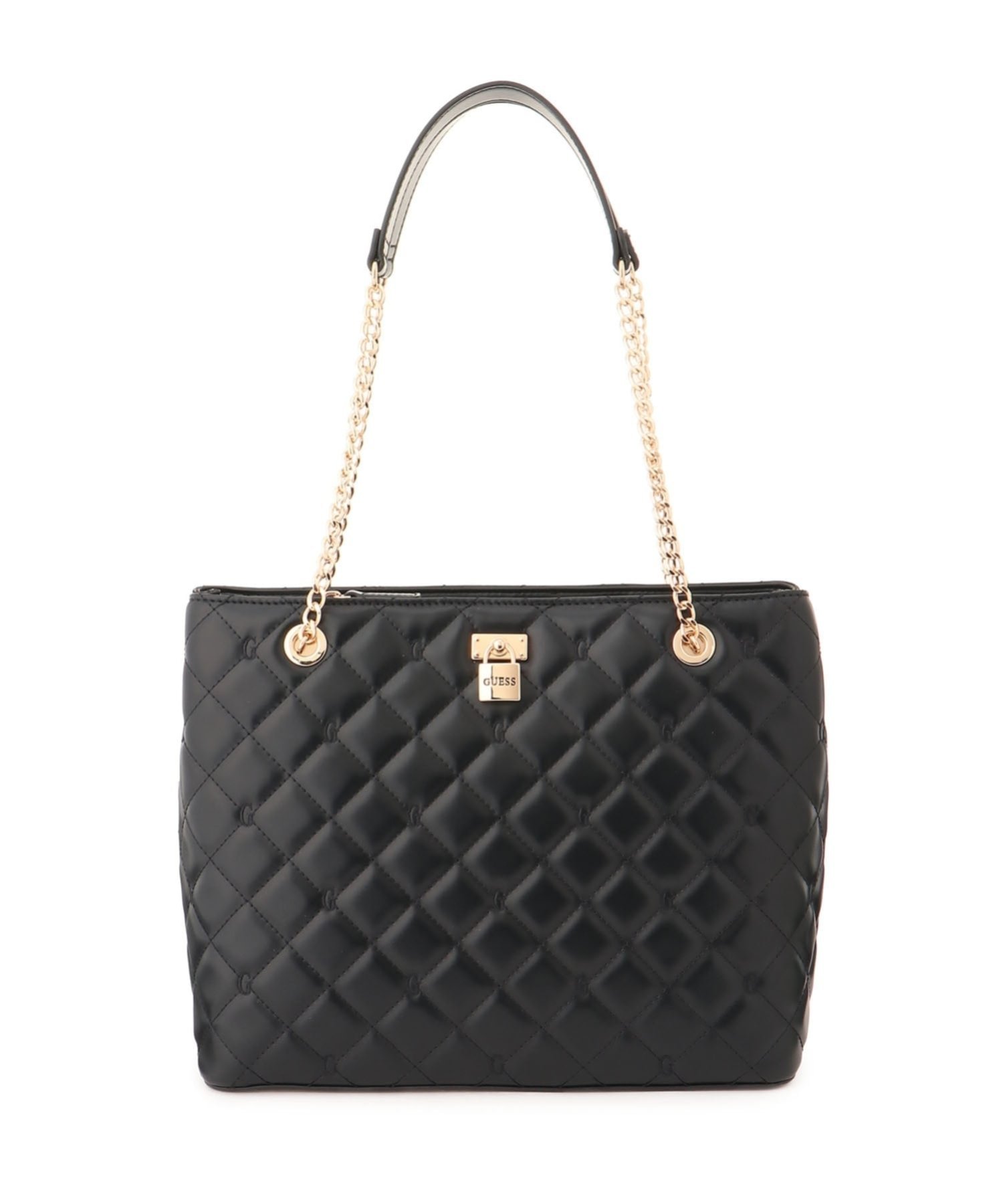 Вышла в продажу сумка с классическим стеганым корпусом. Металлический акцент с логотипом "GUESS" на передней части добавляет этой модели нотку роскоши. Внутри также есть открытый карман, идеально подходящий для хранения таких вещей, как помада или ключи, которые вам нужны быстро.