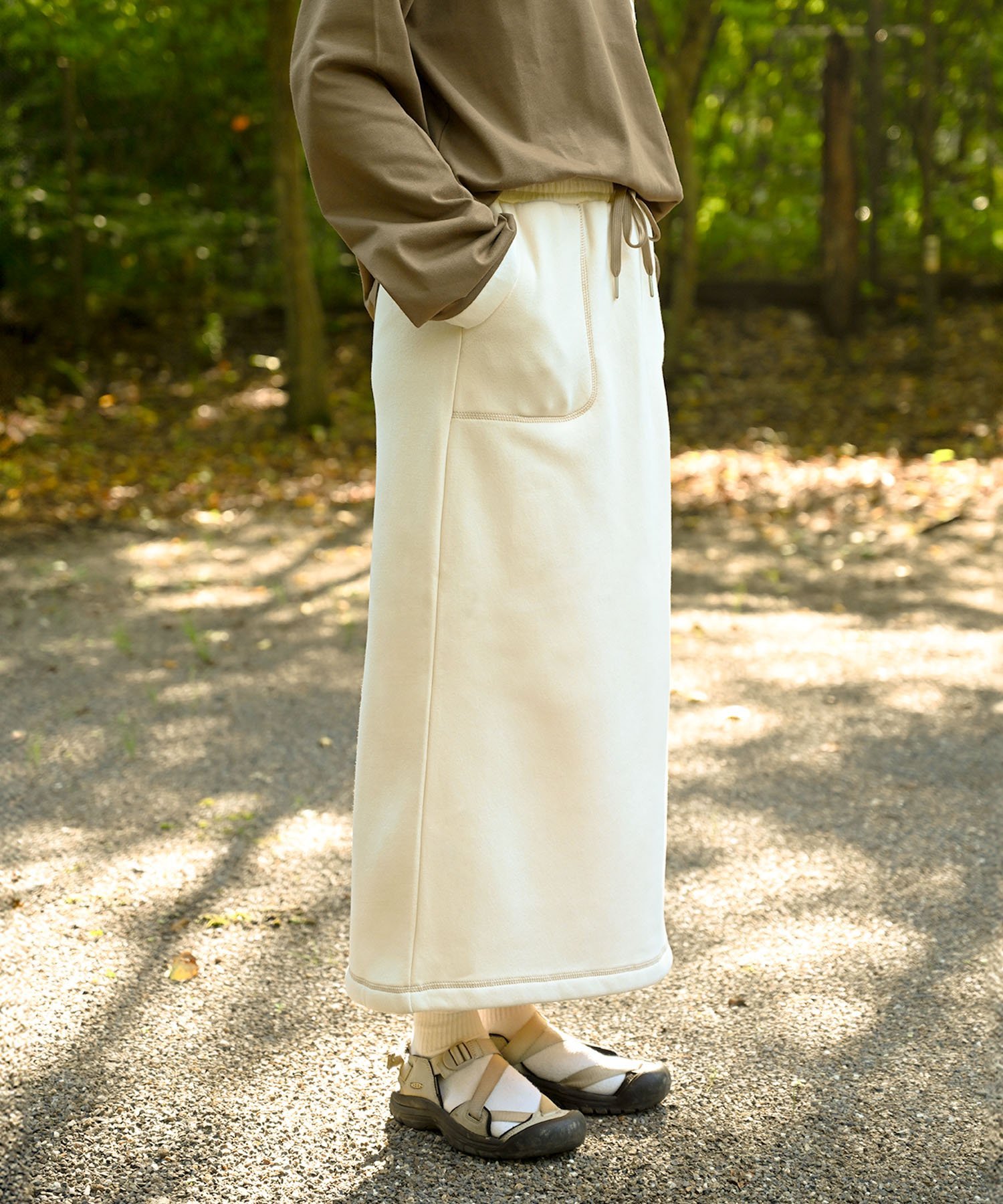 ●Низ имеет разрез с кнопкой, поэтому вы можете расстегнуть пуговицу для свободы движений ног.