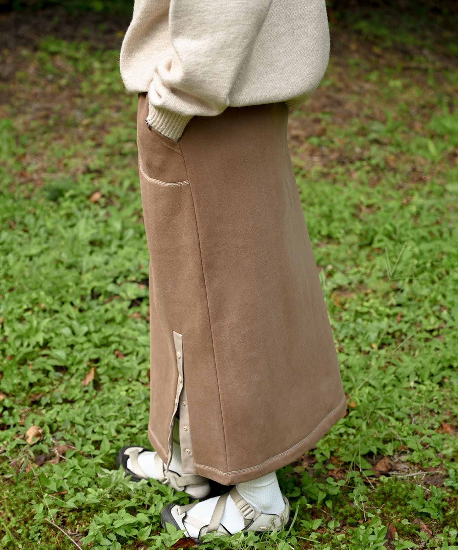 ●Низ имеет разрез с кнопкой, поэтому вы можете расстегнуть пуговицу для свободы движений ног.