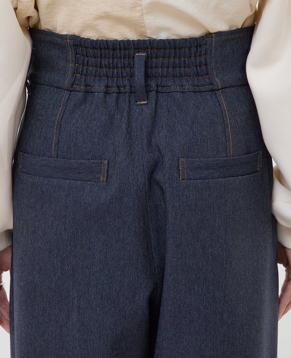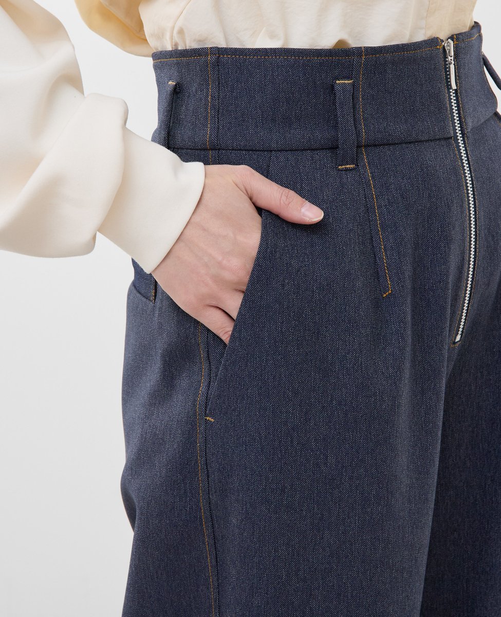 Высокая талия и широкий пояс визуально удлиняют ноги.