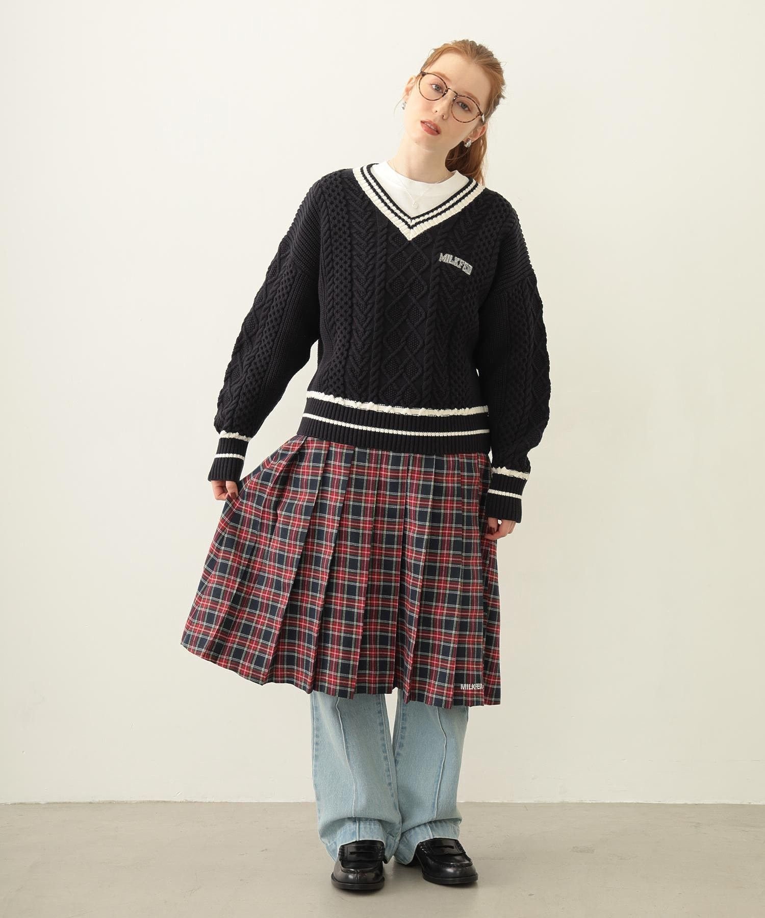 Мы также рекомендуем сочетать его с плиссированной юбкой и клетчатым беретом для создания образа школьницы.