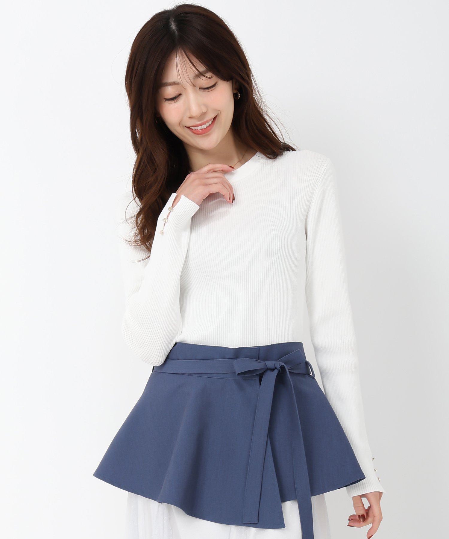 Рубчатый трикотаж с пуговицами в форме сердечек на манжетах для придания образу нотки взрослой милости.