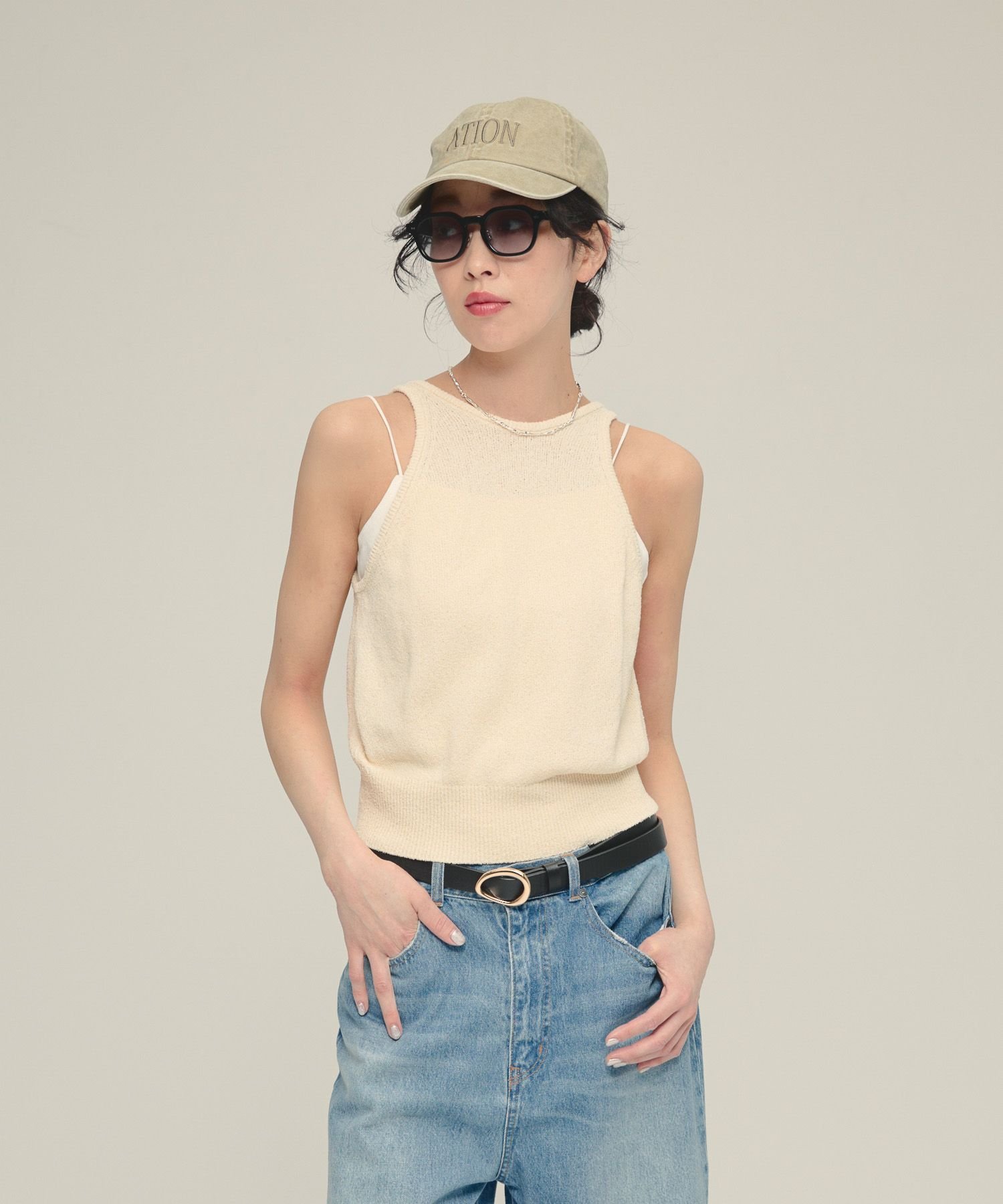 Трикотажное полотно без рукавов, которое можно носить самостоятельно в середине лета.