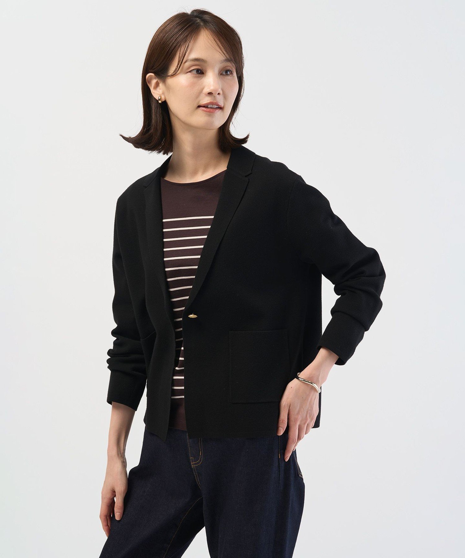 Дизайн: Идеально подходящая для переходных сезонов, эта трикотажная куртка создает изысканный образ всего лишь с помощью пледа. Эта популярная вещь весенне-летнего сезона теперь доступна в осенне-зимних версиях. Несмотря на свободный крой, куртка имеет аккуратный, сбалансированный силуэт, поэтому вы можете носить ее, не чувствуя себя громоздкой. Воротник аккуратно подворачивается, создавая чистый, элегантный вид вокруг лица. Сохраняя изысканный вид куртки, она также сочетает в себе мягкость и комфорт трикотажа для расслабленного ощущения. Она также не мнется и легко стирается вручную дома, что делает ее отличным выбором для простого ухода. Эта простая накидка, идеально подходящая для перехода между сезонами, отлично подойдет для самых разных случаев, от формальных до повседневных.