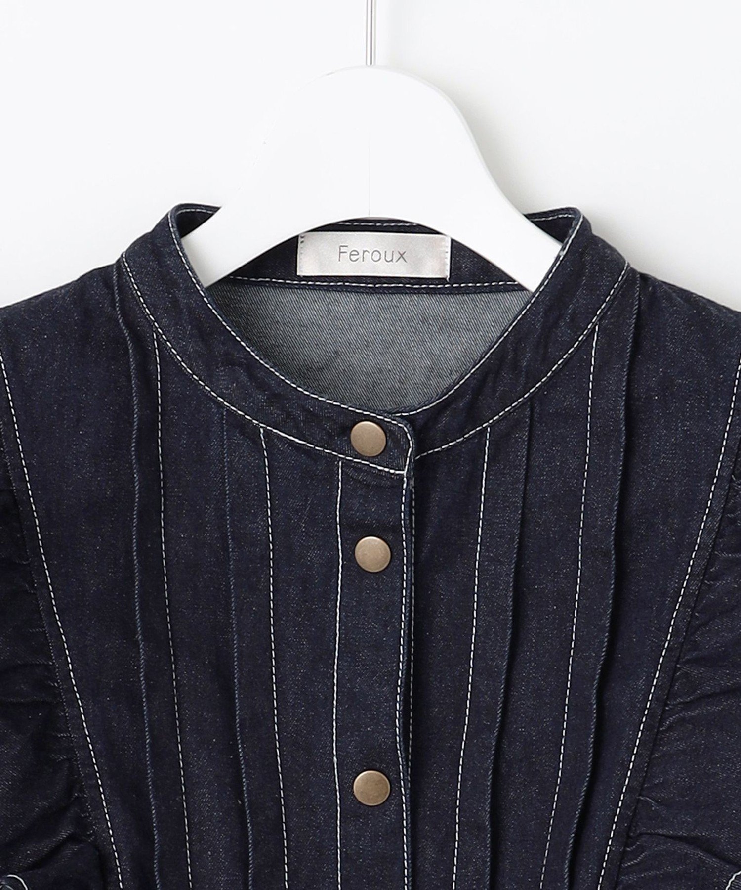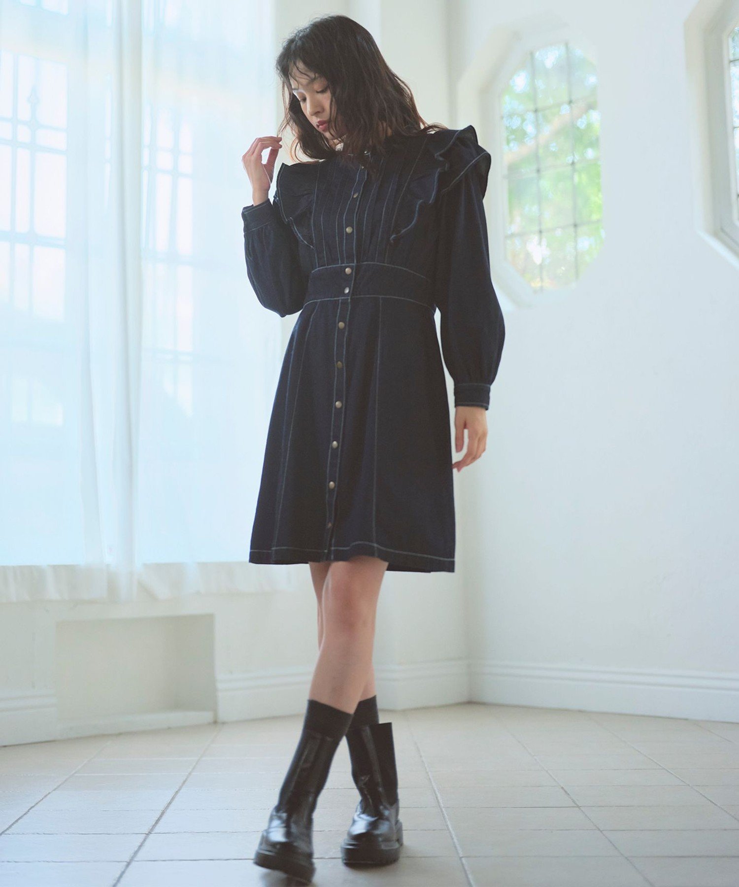 Мини-платье из повседневной джинсовой ткани с оборками.