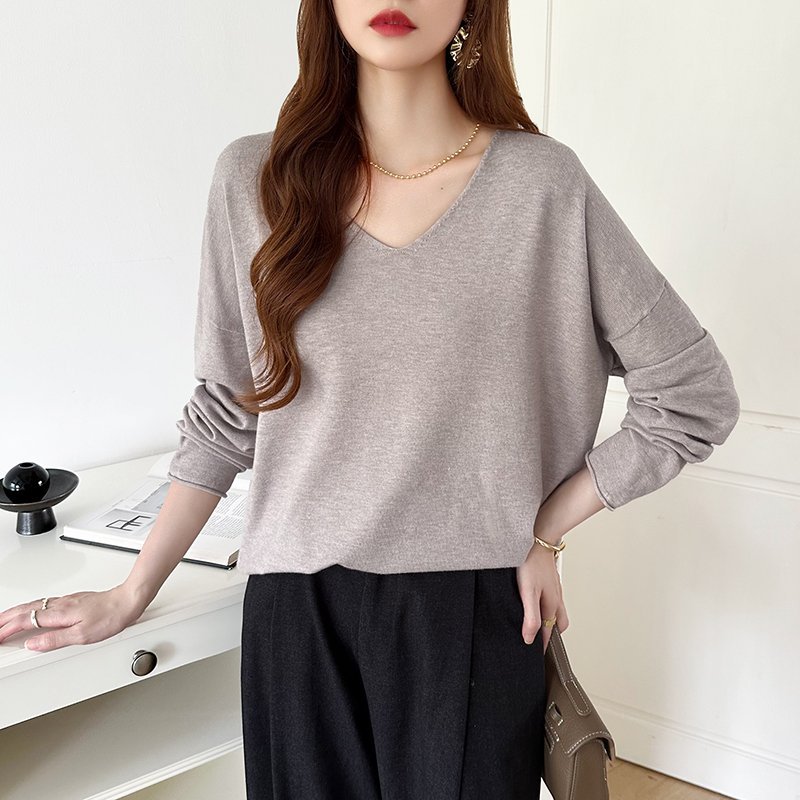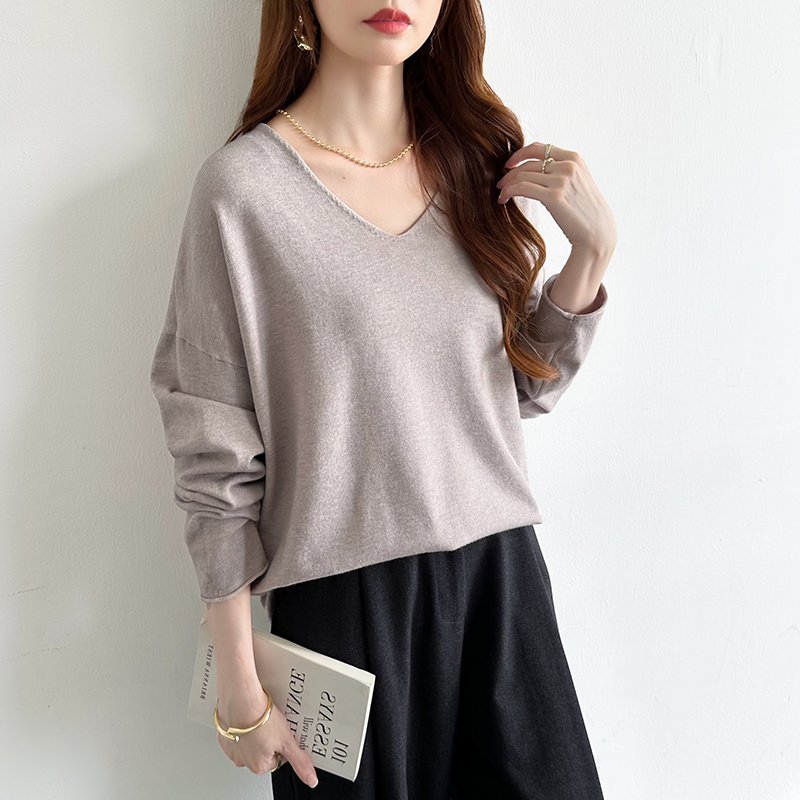 Вязаный свитер с V-образным вырезом в стиле «як», мягкий и приятный на ощупь.