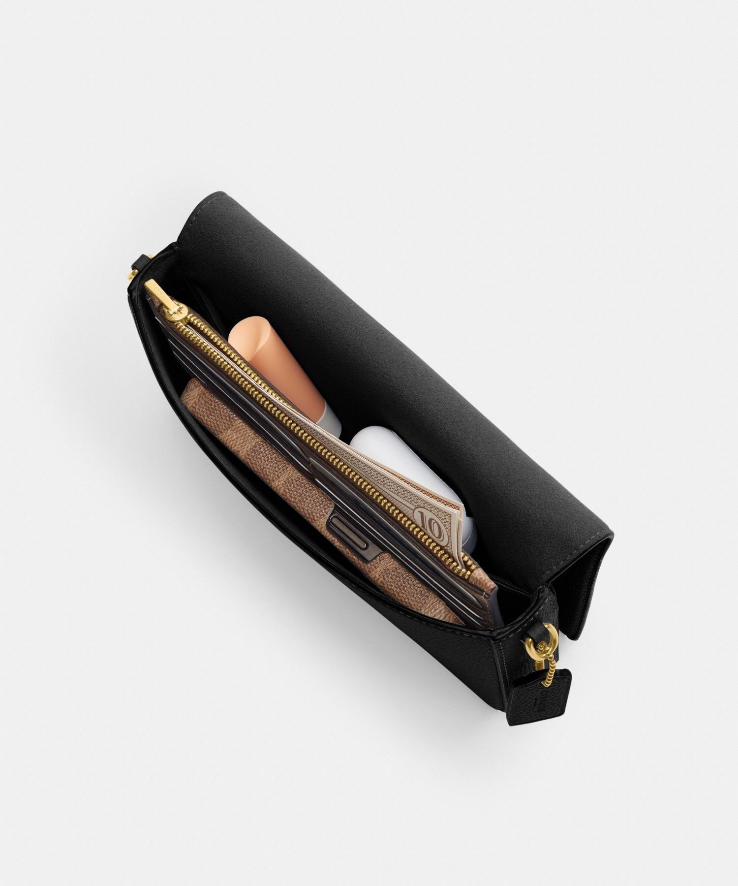 Тонкая, структурированная сумка Mila идеально подходит для повседневного использования. Изготовленная из полированной зернистой кожи, передняя часть с клапаном украшена привлекательной фурнитурой Coach в виде буквы "C".