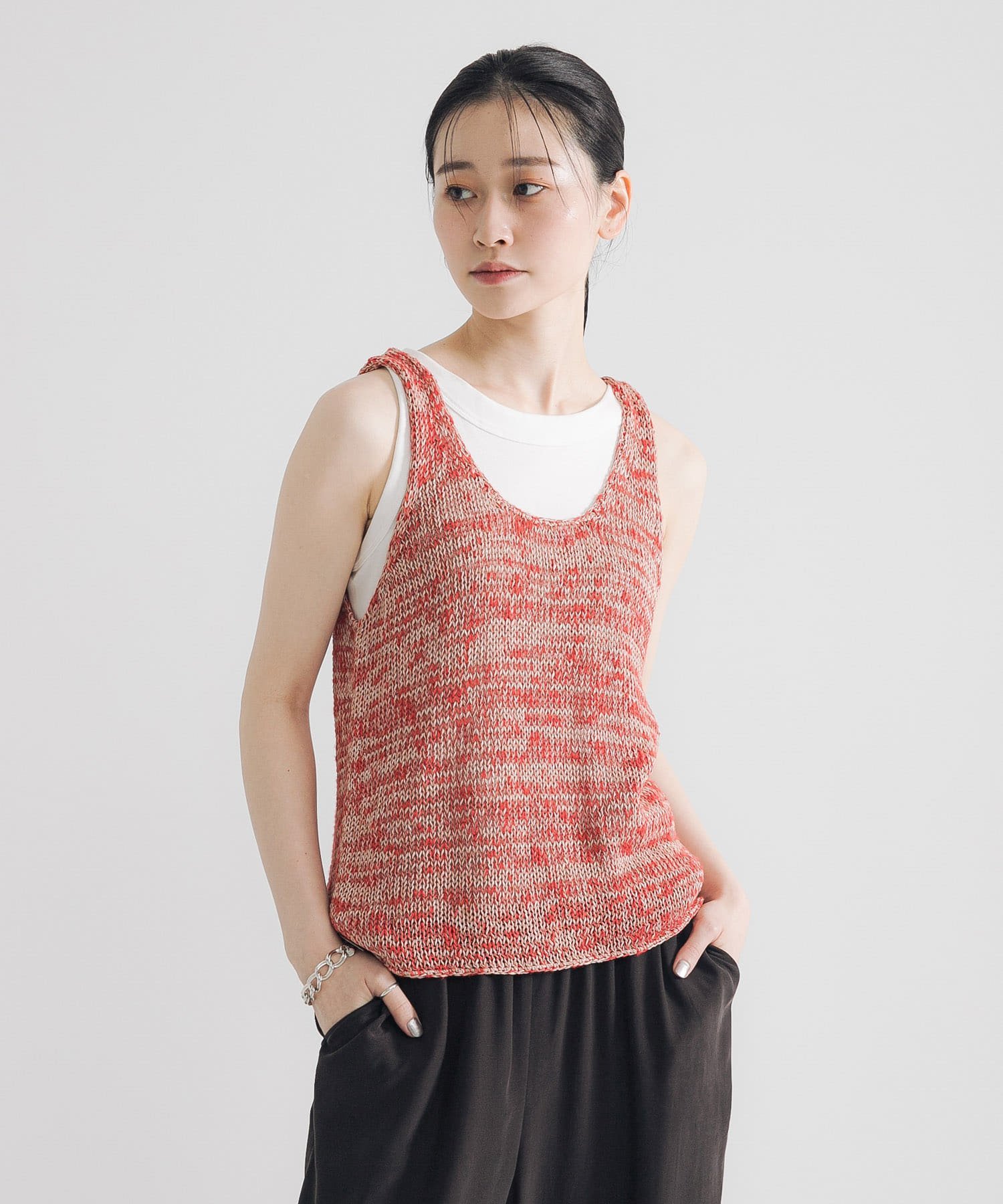 ※Этот продукт обработан таким образом, чтобы напоминать лен. При вязании или замешивании пряжи, похожей на лен, вискозная мембрана может легко отслаиваться от изделия, вызывая его «отслоение». Поэтому будьте осторожны при сочетании темных и светлых вещей.