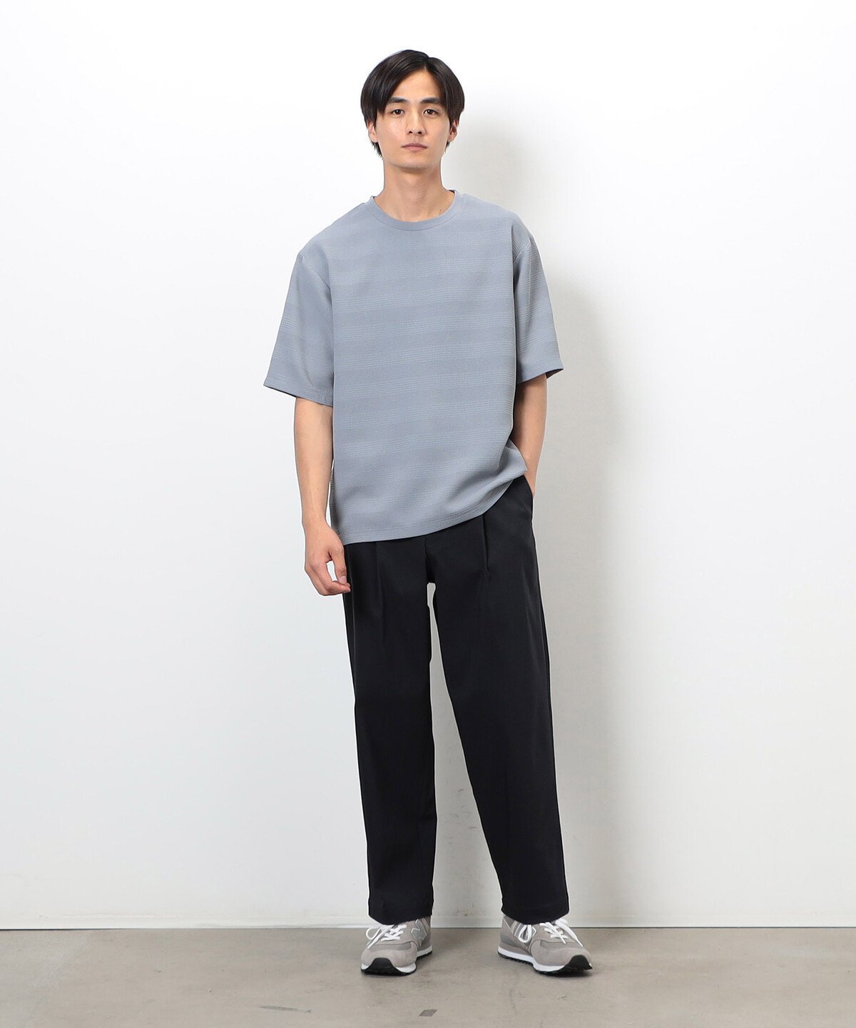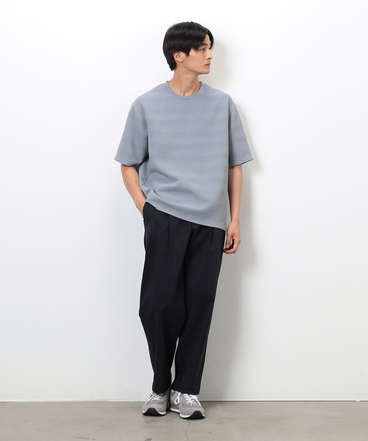 Футболка с круглым вырезом и трехмерной поверхностью в качестве основного элемента дизайна.