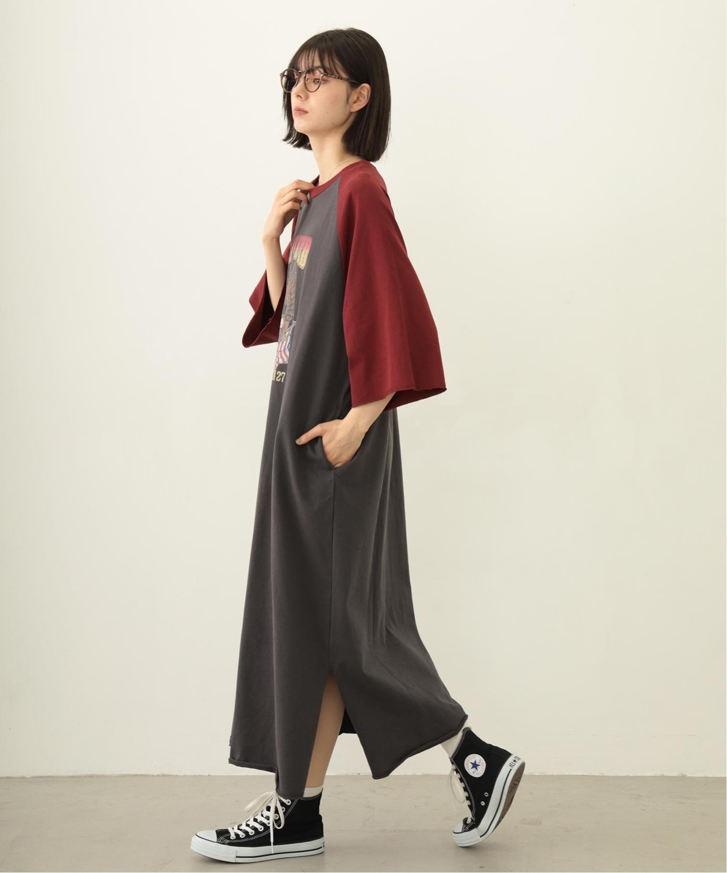Это платье сшито из ткани, скроенной и сшитой вручную, и украшено принтом орла, напоминающим винтажную футболку.