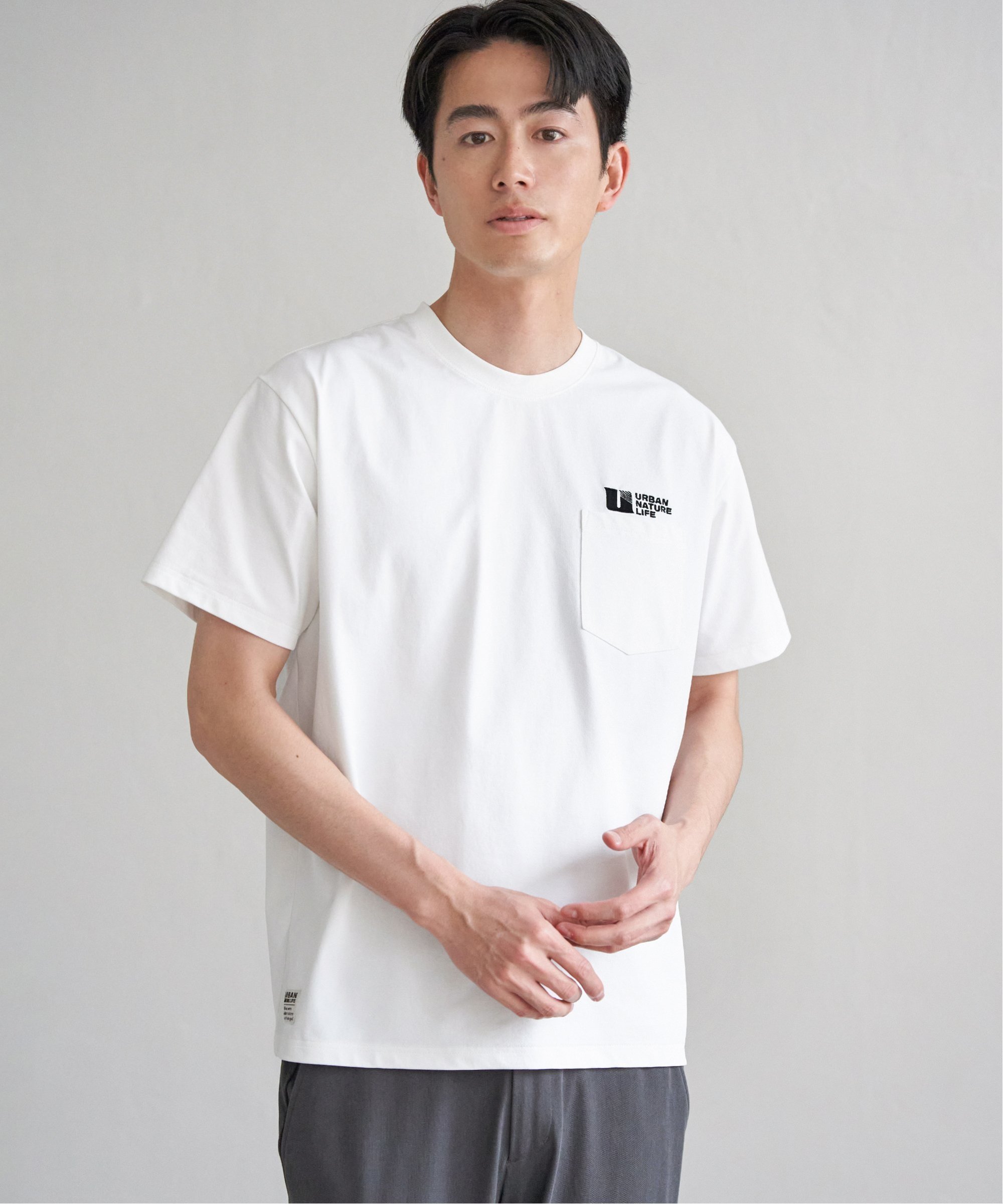 Эта футболка с карманом имеет вышивку на левой стороне груди и принт на левом рукаве.