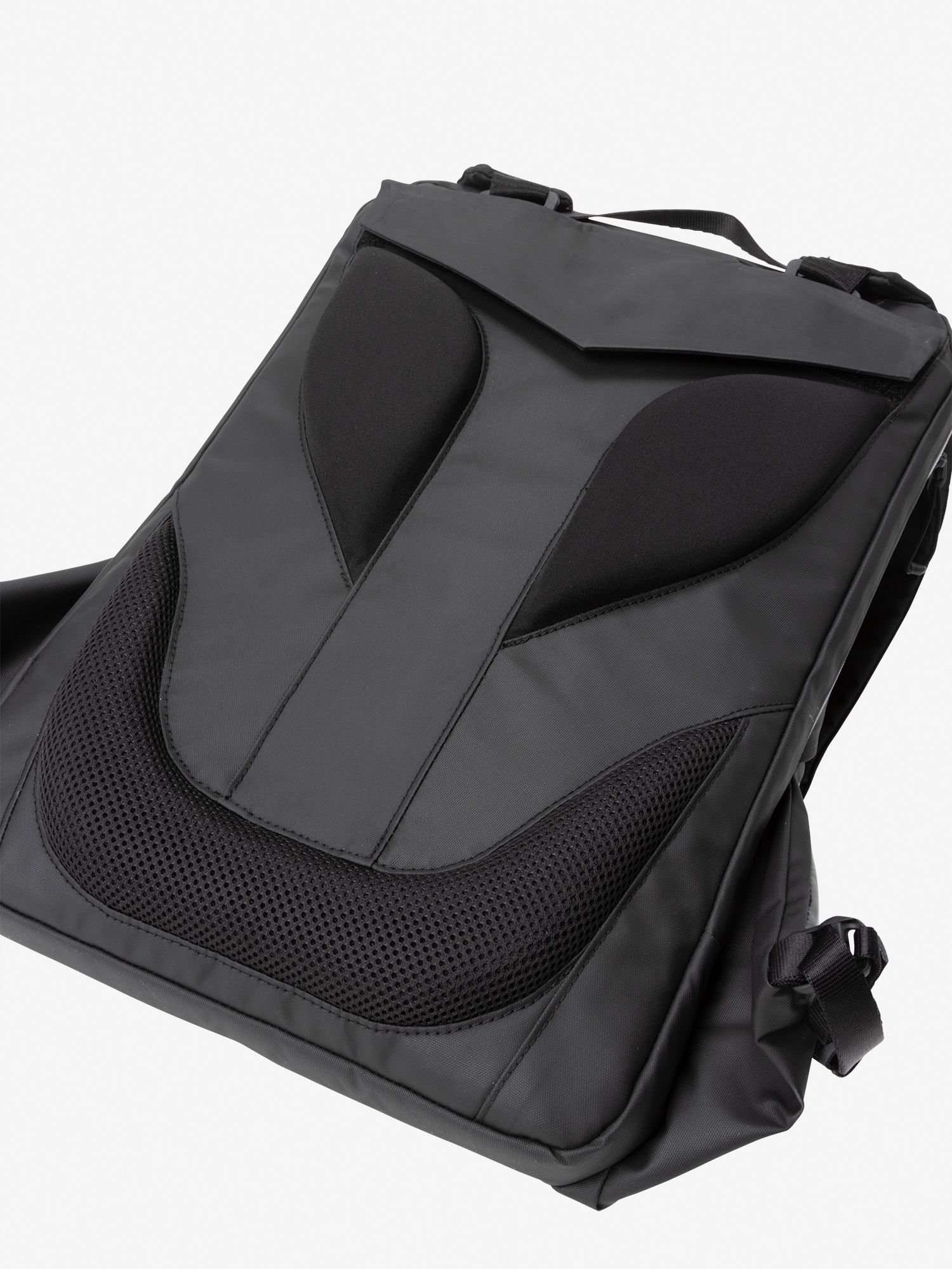 Материал изготовлен из водоотталкивающего и прочного нейлона плотностью 420 ден, обработанного карбонатом. Посадка, вдохновленная беговыми рюкзаками, стабильна и удобна в ношении, а спинка разработана для комфортной посадки и воздухопроницаемости. Основание плечевых лямок регулируется с помощью направляющих, что позволяет настроить посадку под ваше тело.