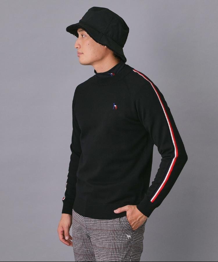 Трикотаж с полуоткрытым воротником и эффектными трехцветными полосами на рукавах