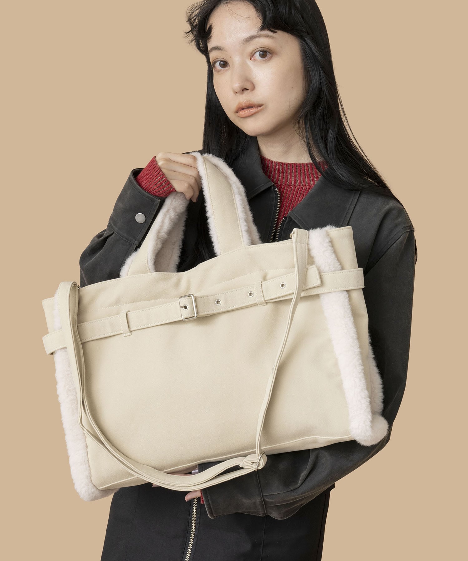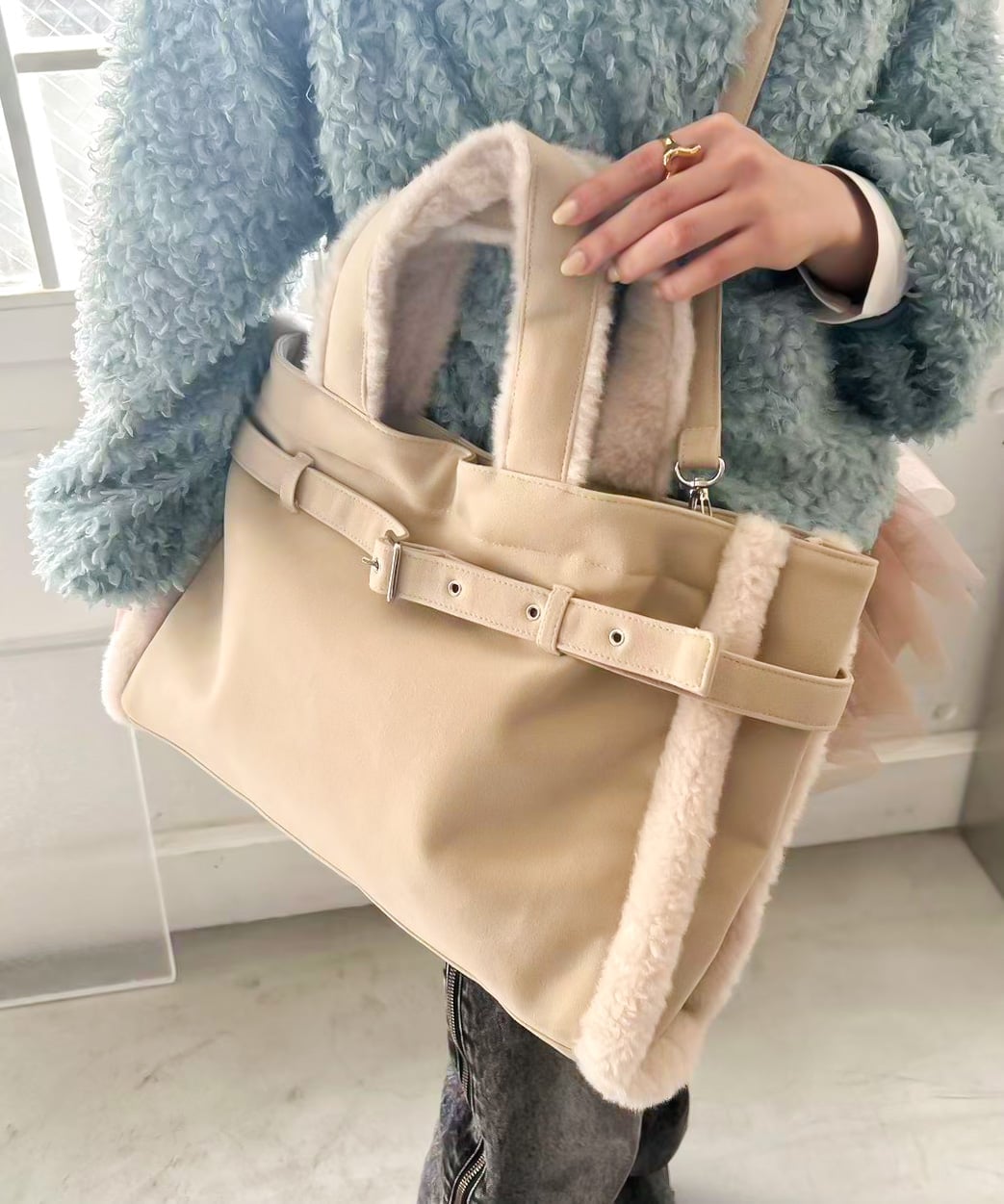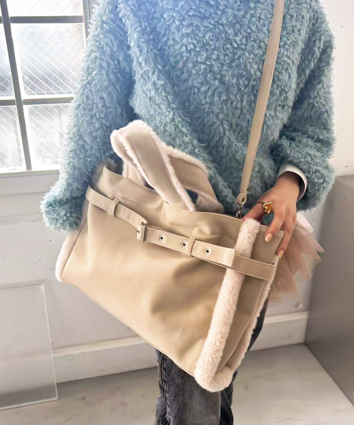 Сумка-тоут с теплым искусственным мехом и привлекательным дизайном пояса.