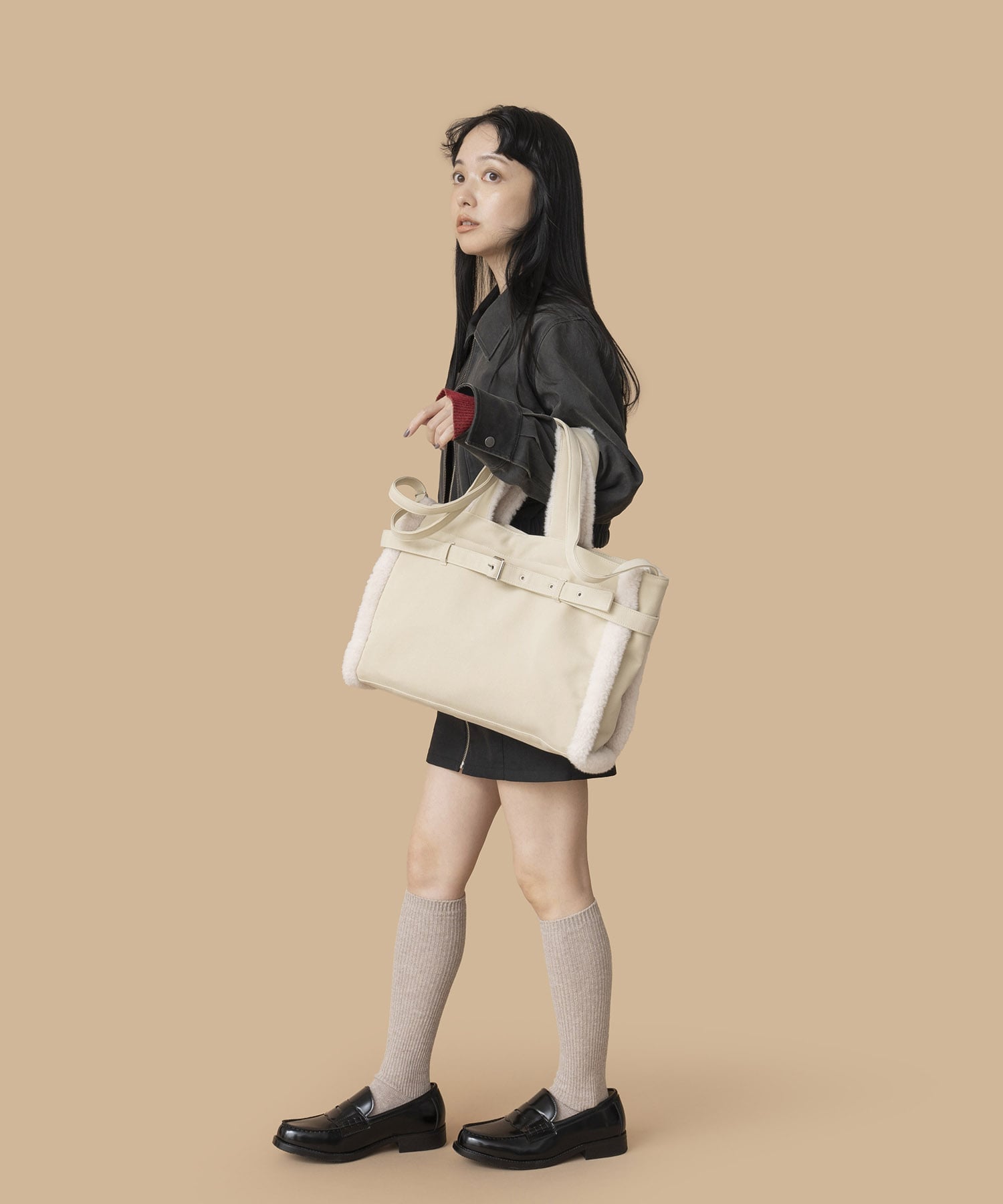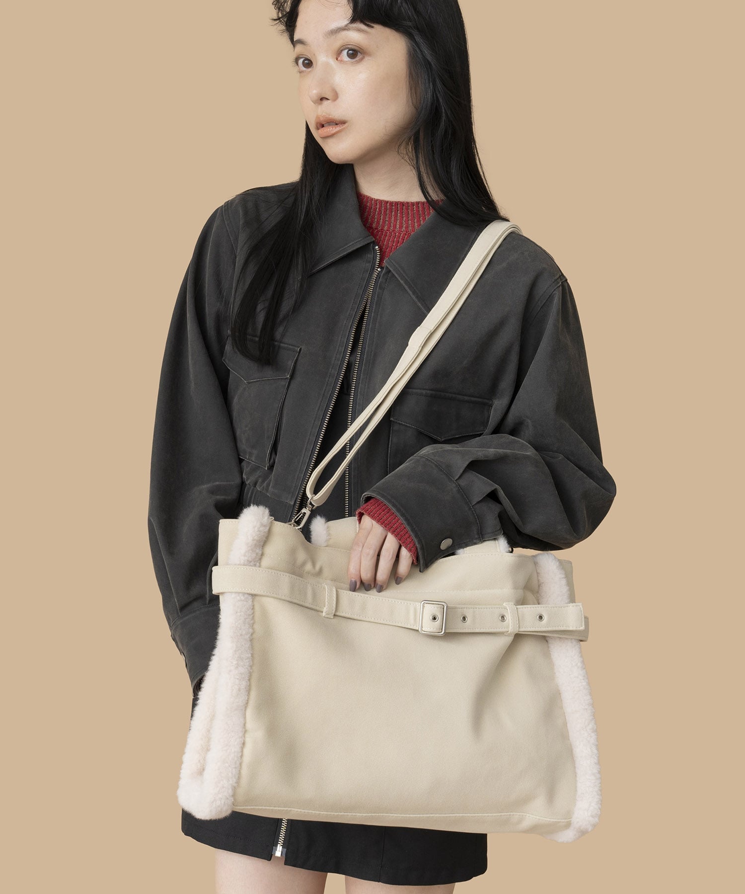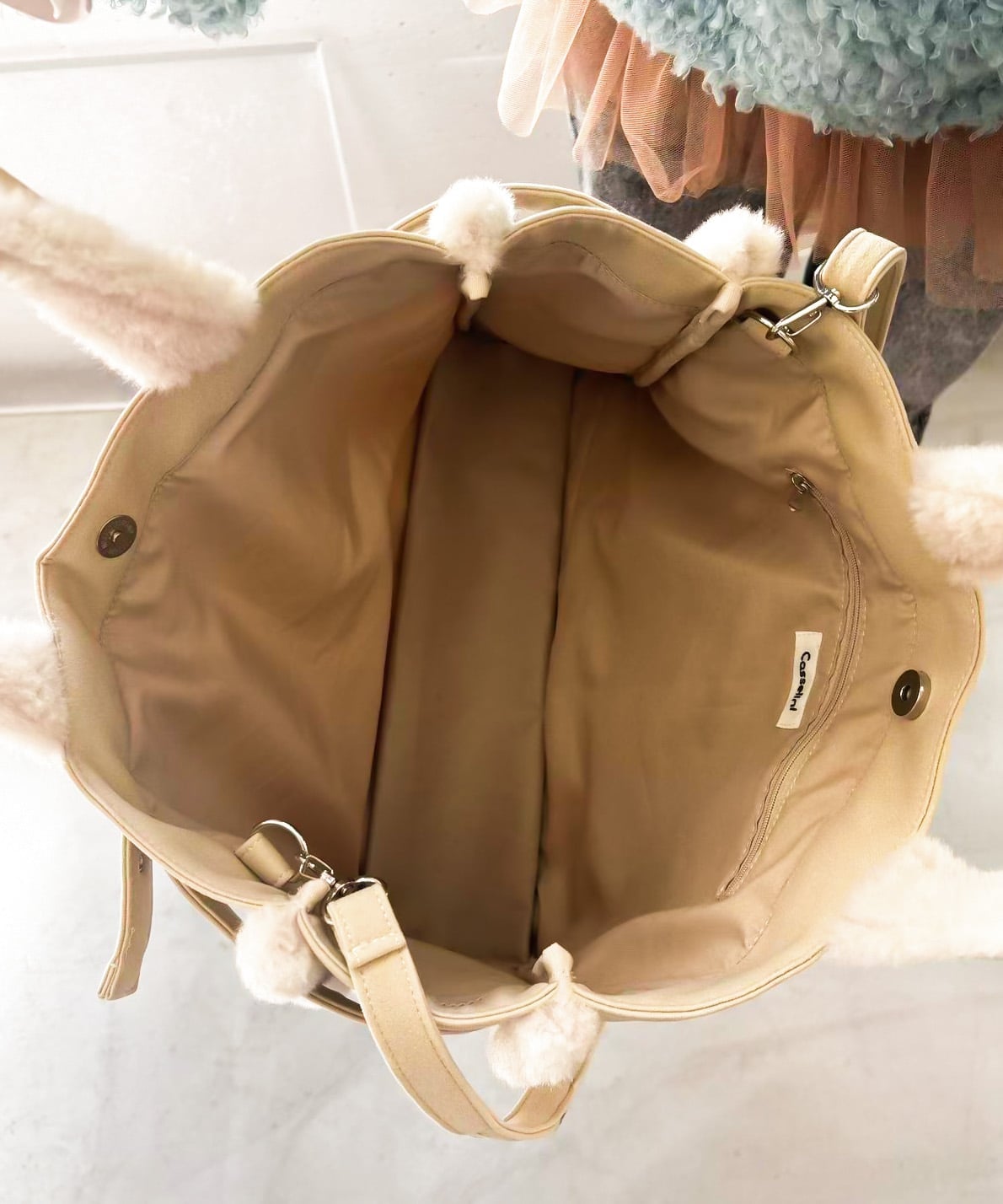 Сумка-тоут с теплым искусственным мехом и привлекательным дизайном пояса.