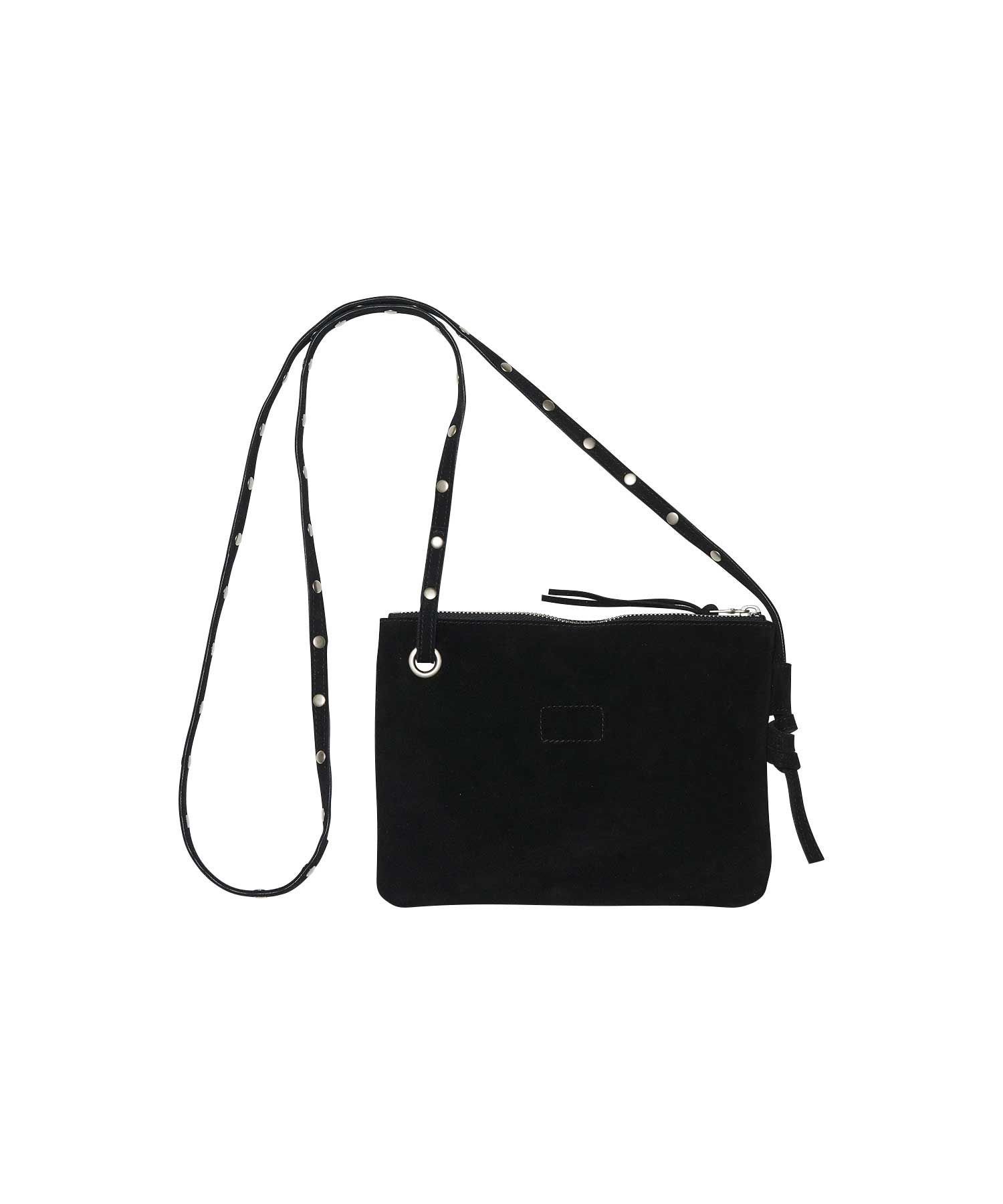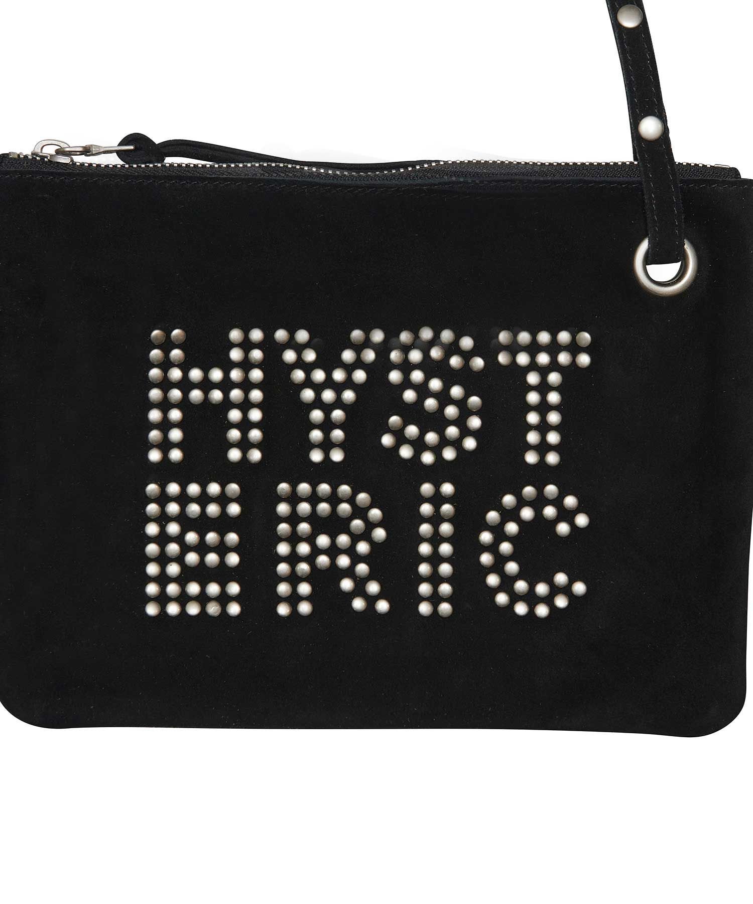 Сумка-саквояж из коровьей замши с логотипом, выполненным из множества маленьких заклепок.