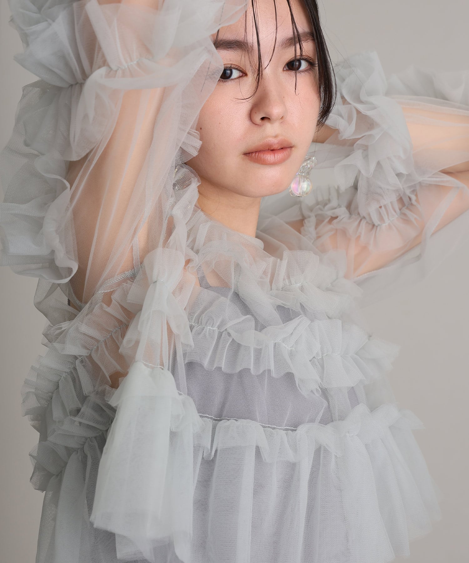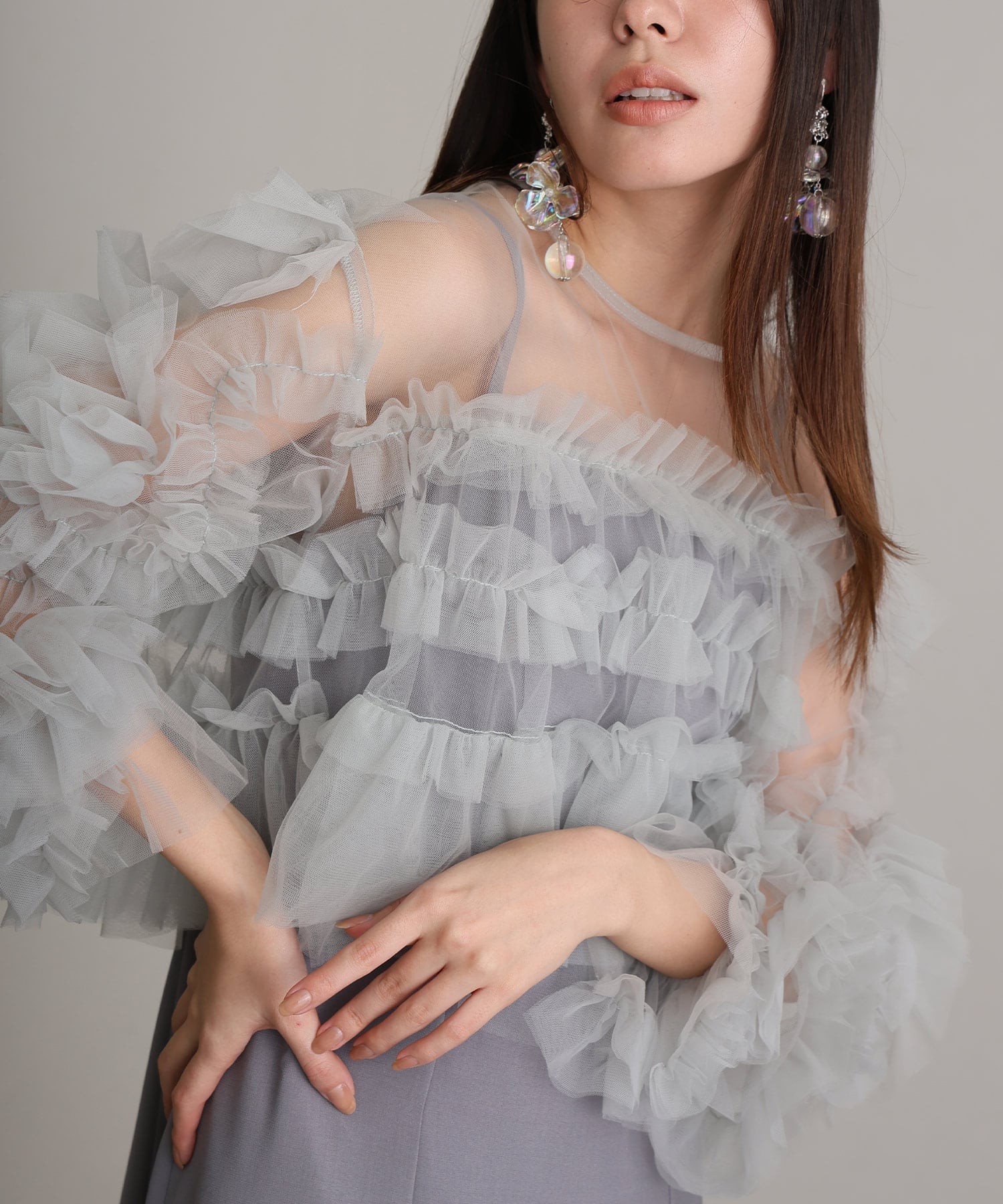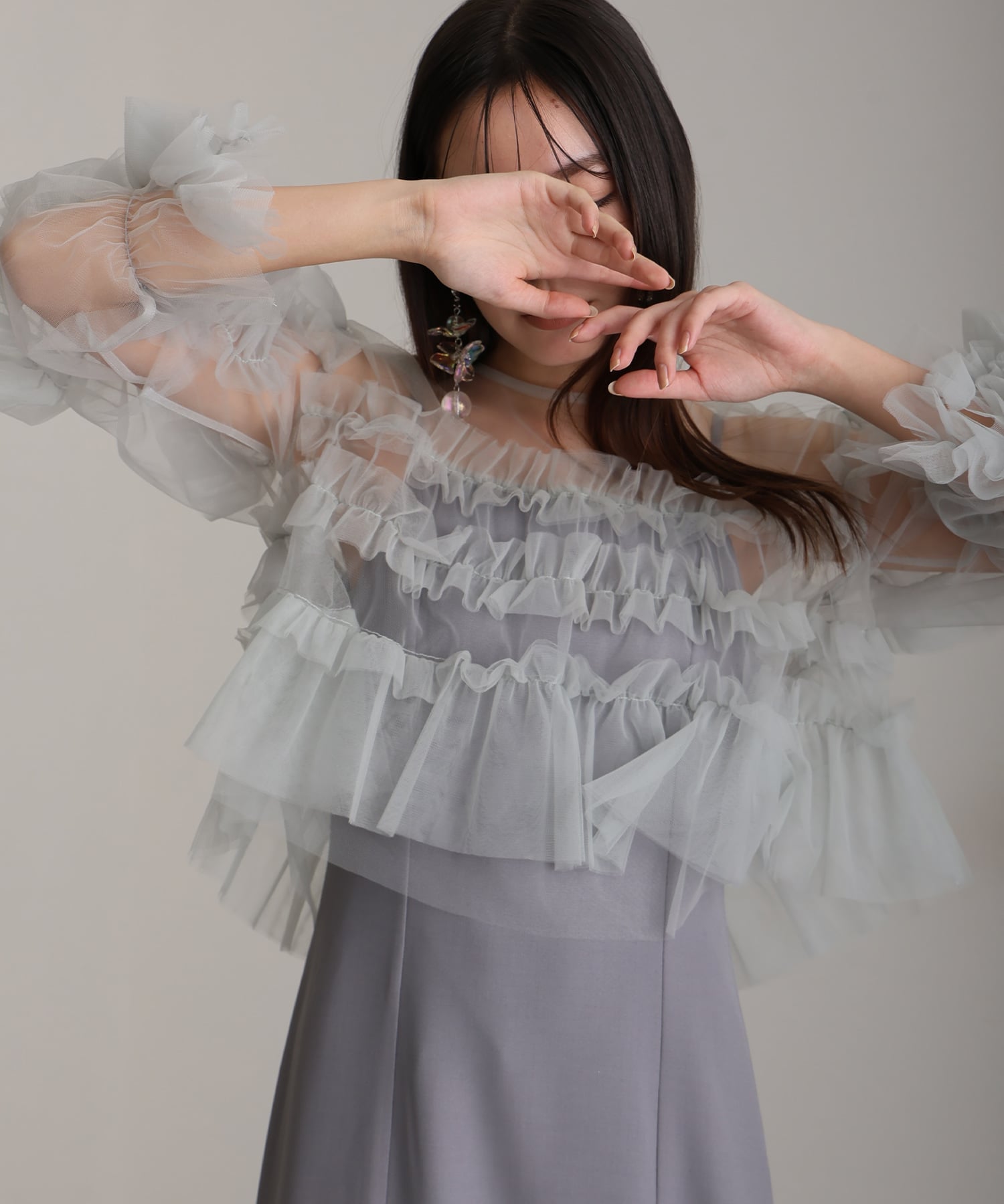 Великолепное платье, щедро украшенное легкими оборками, меняющими свой вид при каждом движении.