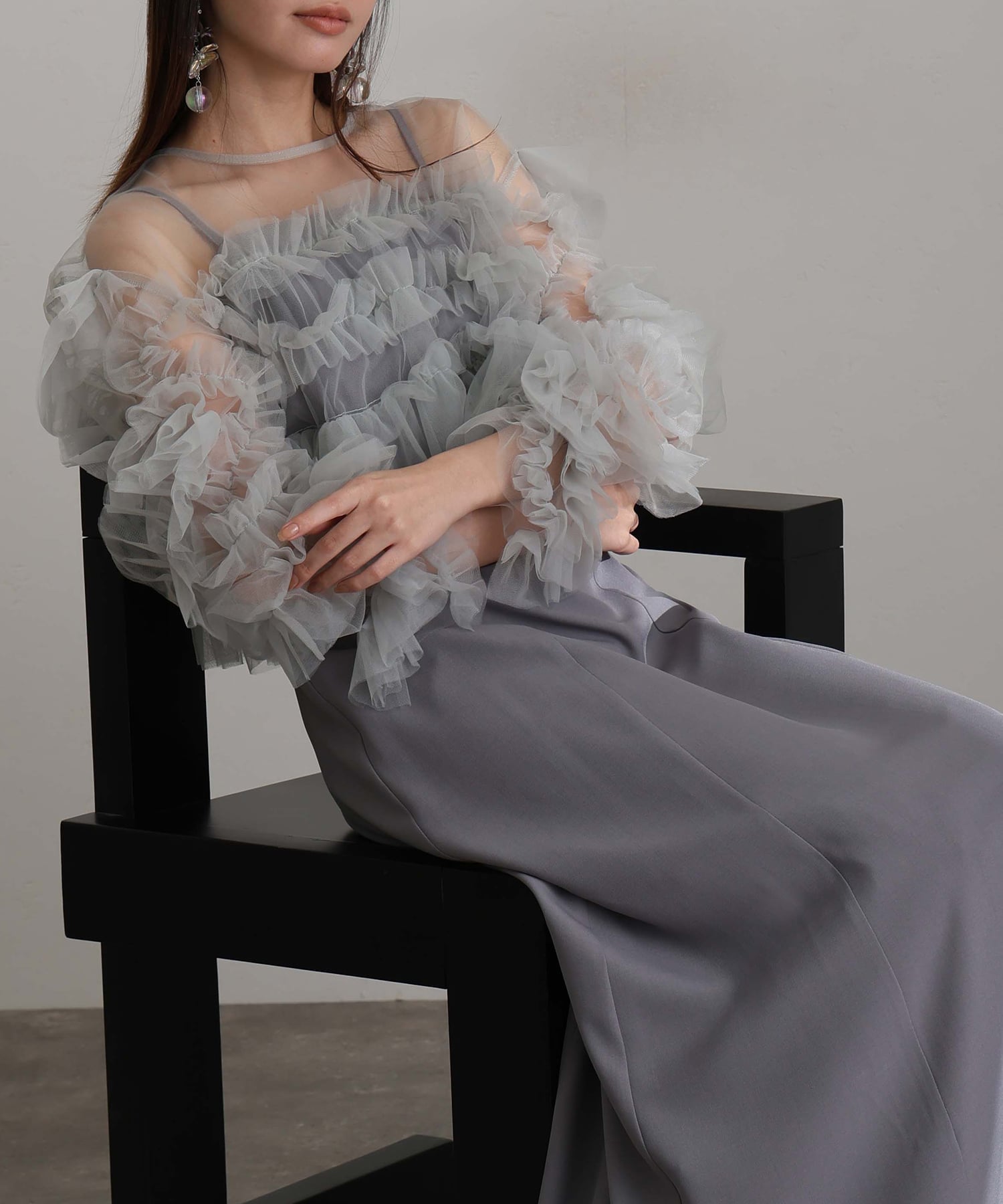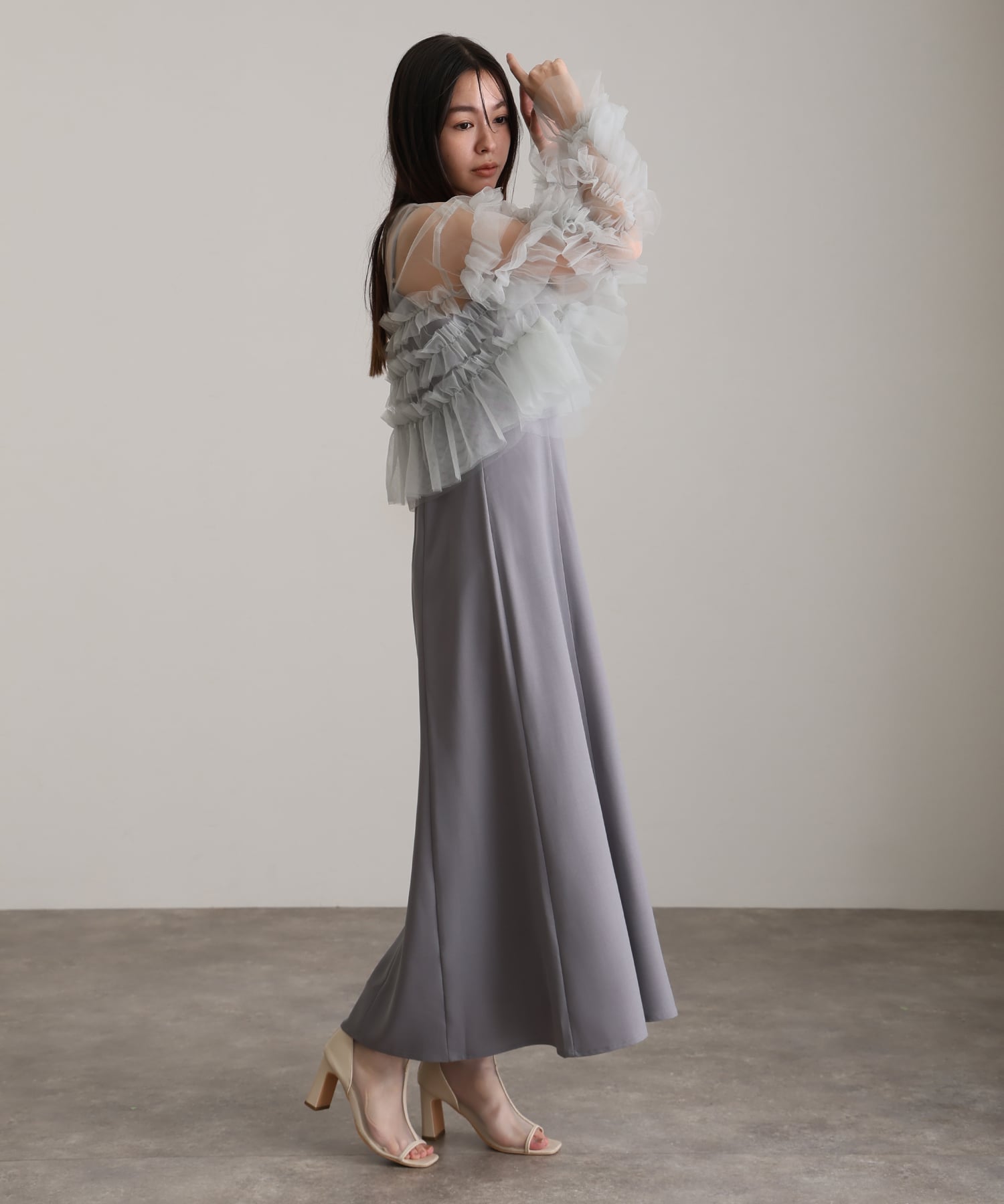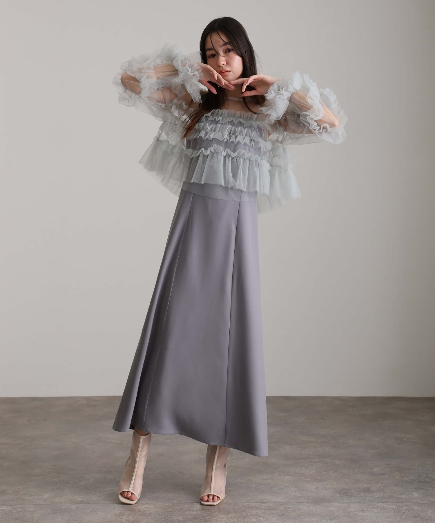 Нежно расклешенная юбка создает красивый и элегантный силуэт до самых ног.
