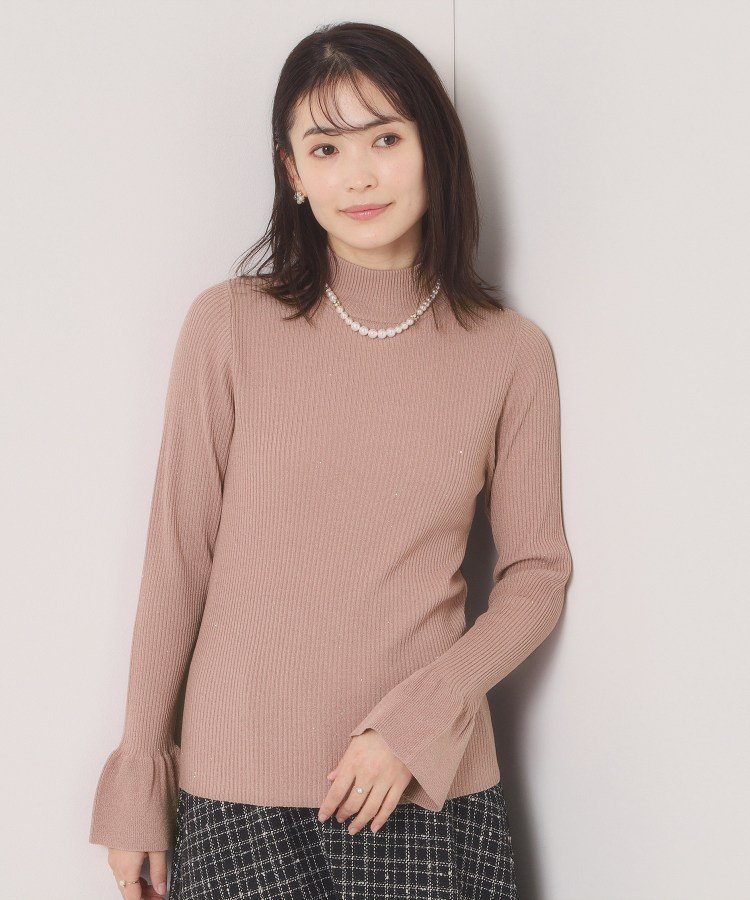 Вязаный трикотаж в рубчик, украшенный нежными пайетками.