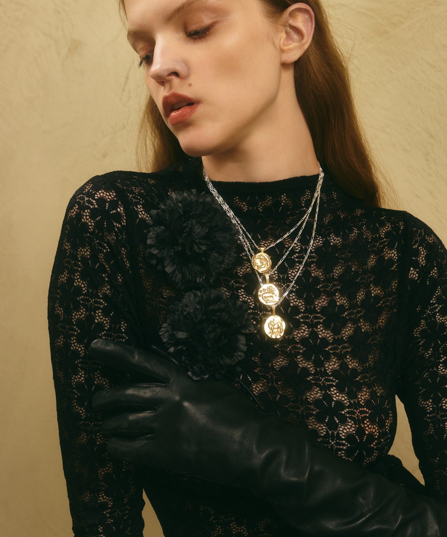 Топ с роскошным и великолепным кружевным изображением георгина.Проступающая сквозь нежную ткань открытая кожа добавляет чувственный акцент.Он плавно облегает фигуру, подчеркивая мягкие изгибы, свойственные женщинам.Его можно носить как самостоятельно с облегающей юбкой, так и в качестве нижнего слоя под жакет или рубашку.Еще одна его особенность — универсальность.