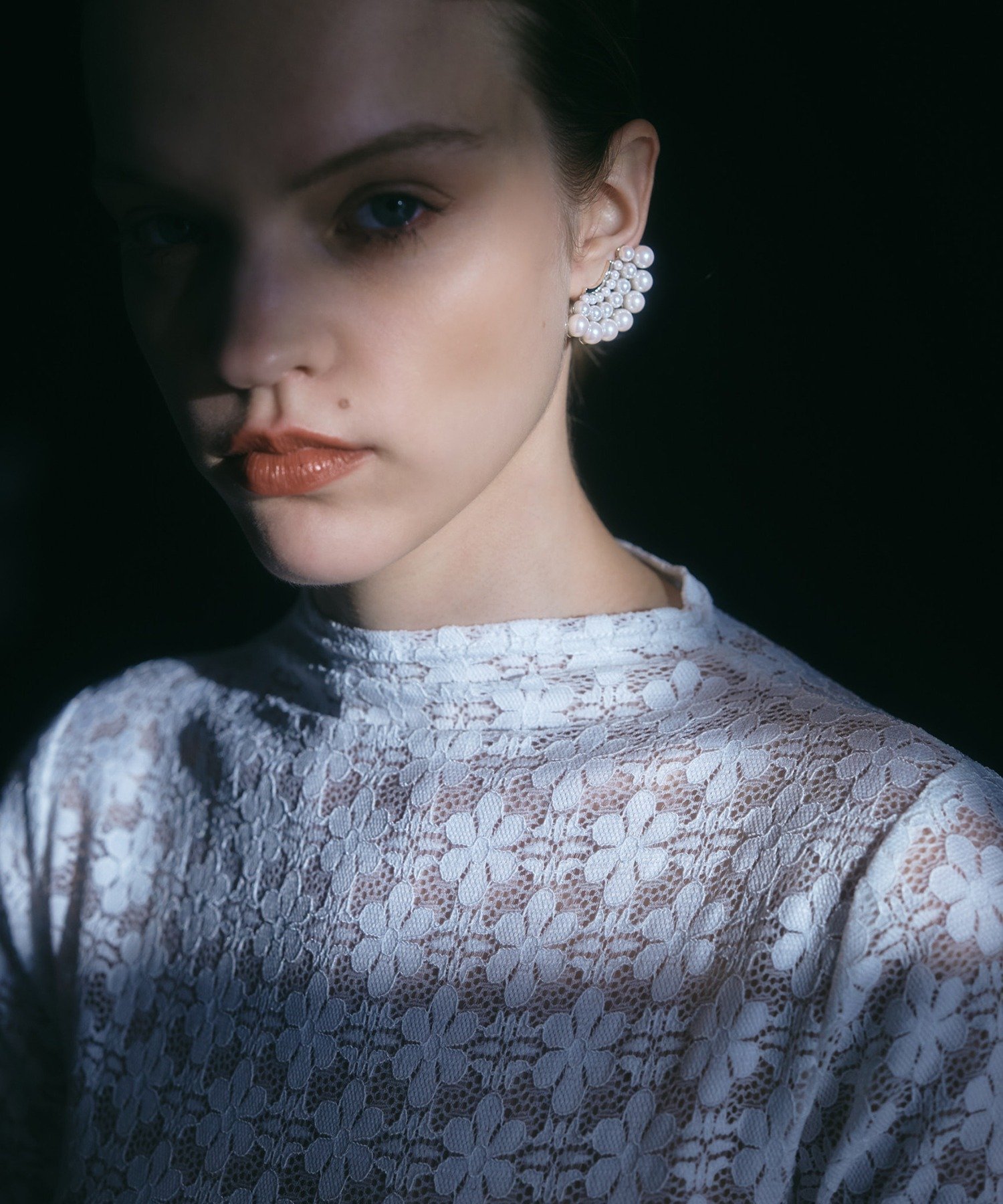 Топ с роскошным и великолепным кружевным изображением георгина.Проступающая сквозь нежную ткань открытая кожа добавляет чувственный акцент.Он плавно облегает фигуру, подчеркивая мягкие изгибы, свойственные женщинам.Его можно носить как самостоятельно с облегающей юбкой, так и в качестве нижнего слоя под жакет или рубашку.Еще одна его особенность — универсальность.