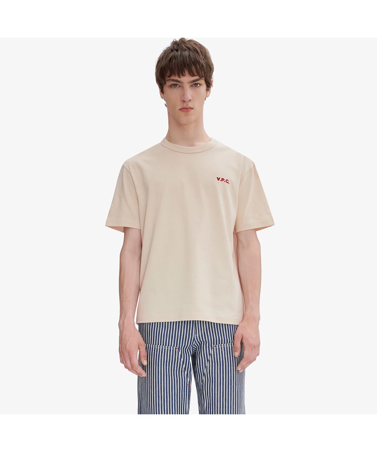 Серебристая хлопковая футболка с небольшим логотипом VPC на левой стороне груди.