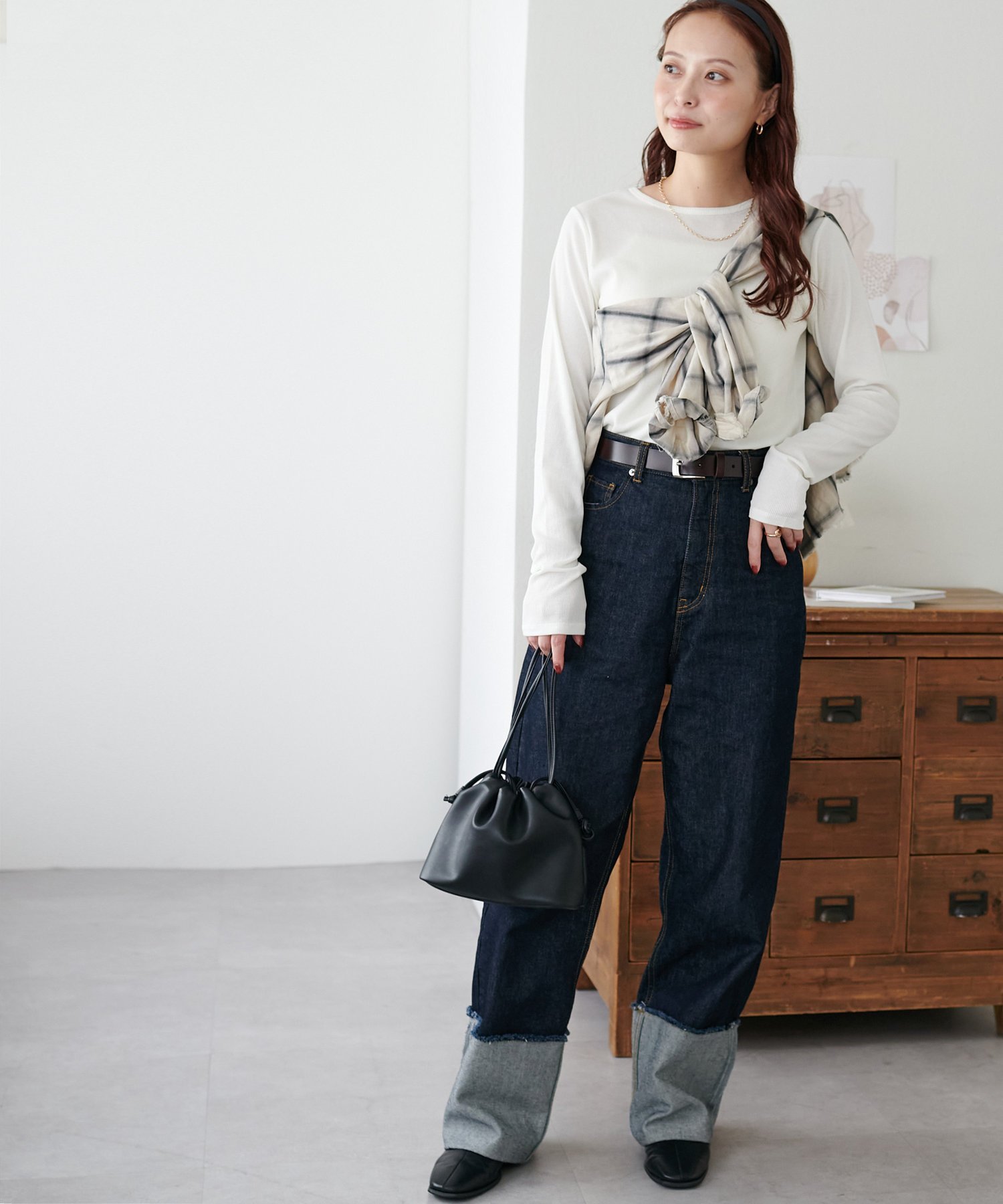 Рукава длинные, поэтому мы рекомендуем заправлять их в топ, позволяя им выглядывать из-под манжет♪