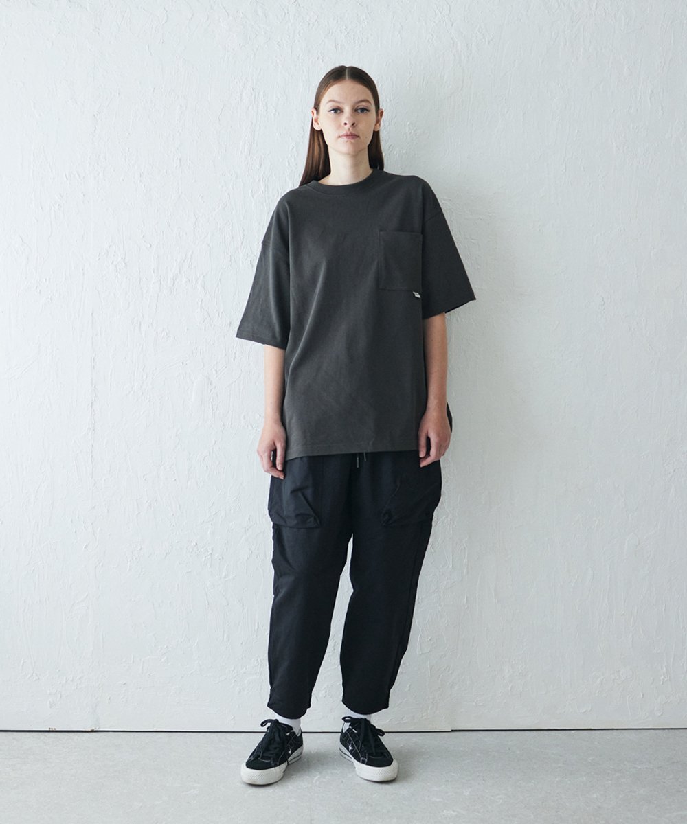 Изготовлено из плотной, плотно сплетенной 100% хлопковой трикотажной ткани. Благодаря использованию пряжи, полученной методом пневматического прядения, ткань приятна на ощупь и удобна в ношении в условиях влажного климата Японии.
