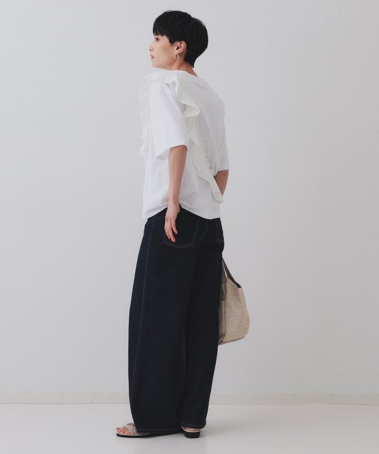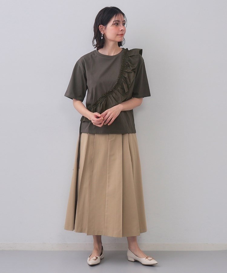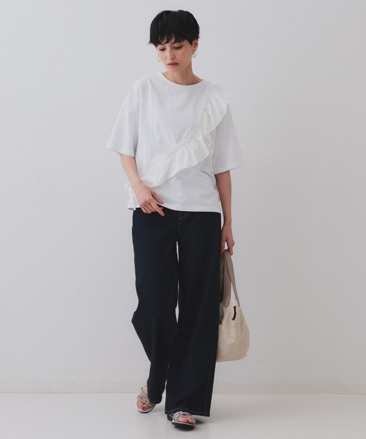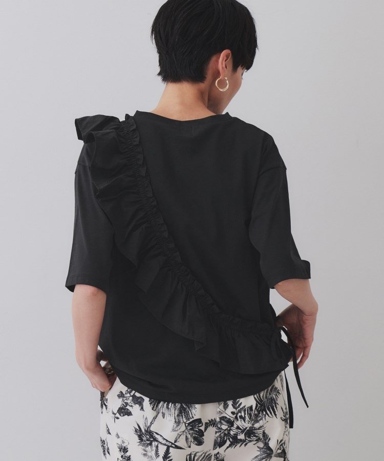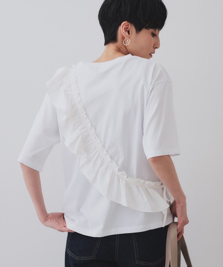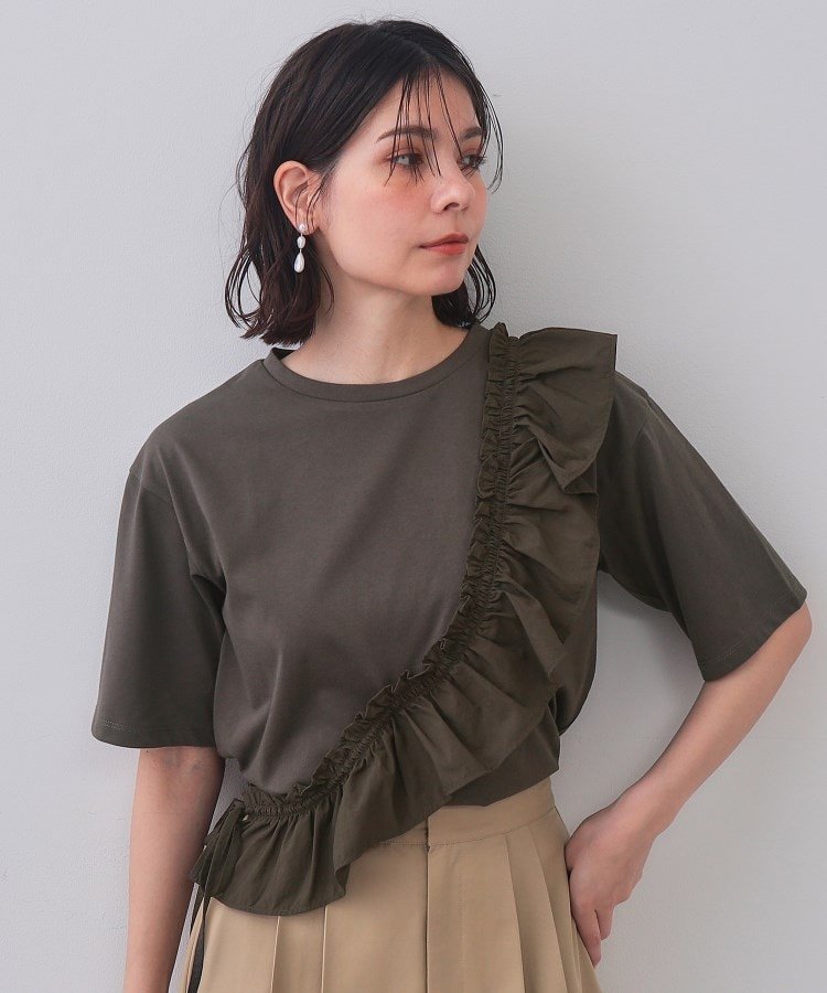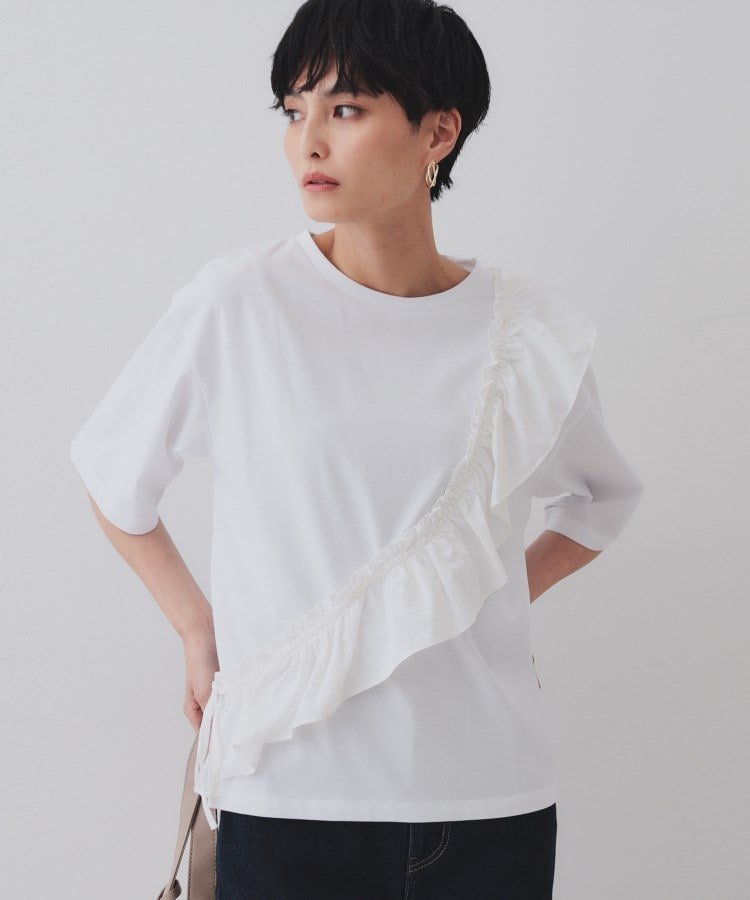 Модель «Кассо» с базовой футболкой и оборками из разных материалов, прикрепленными по диагонали.