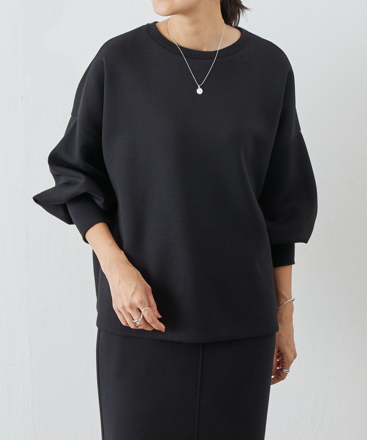 Удлиненные ребристые манжеты создают дизайн, подчеркивающий баланс и пышность рукавов-фонариков.