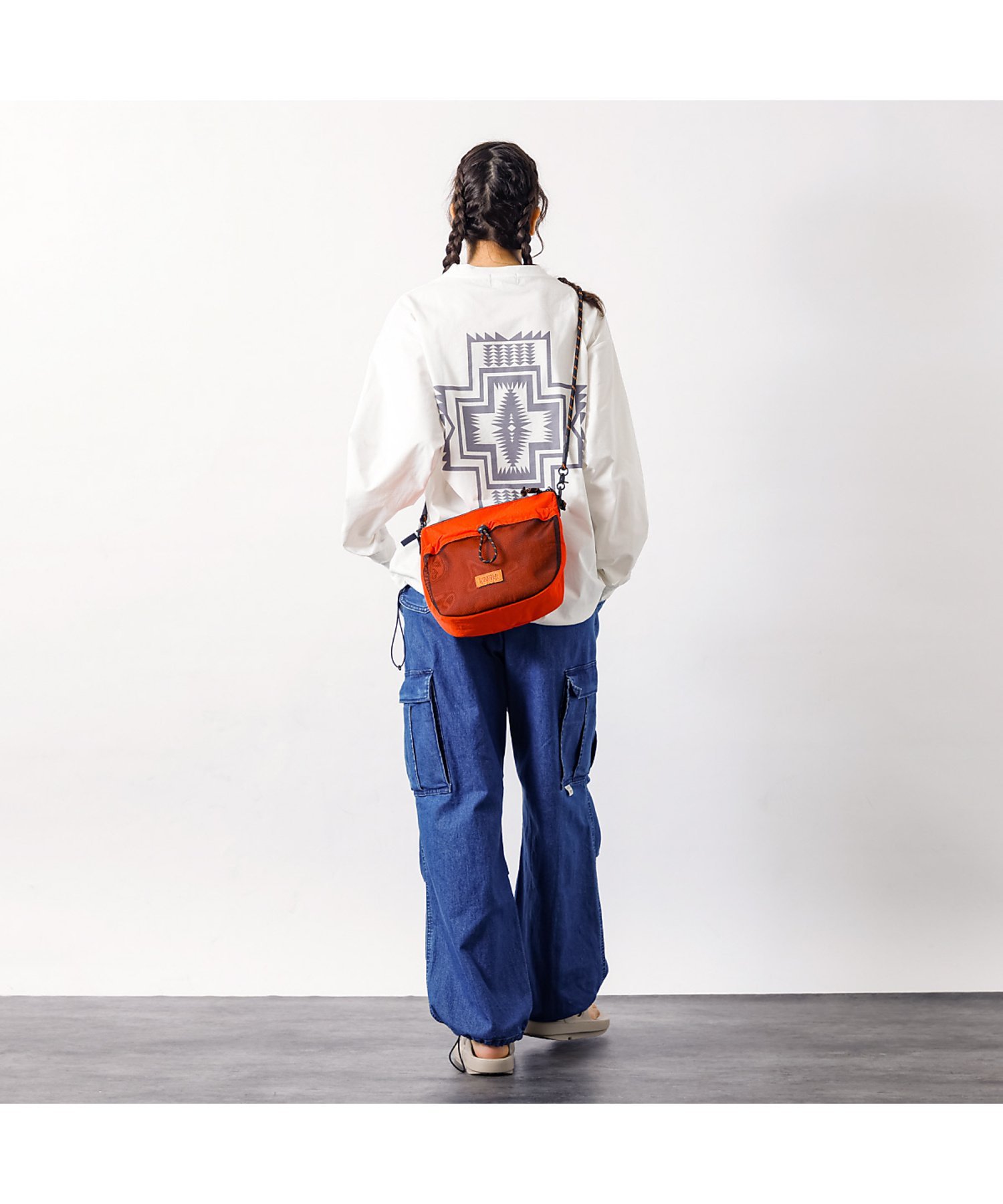 Наплечная сумка с сетчатой тафтой и нейлоновой передней частью. Толстый оригинальный плечевой ремень из веревки — отличительная черта бренда.