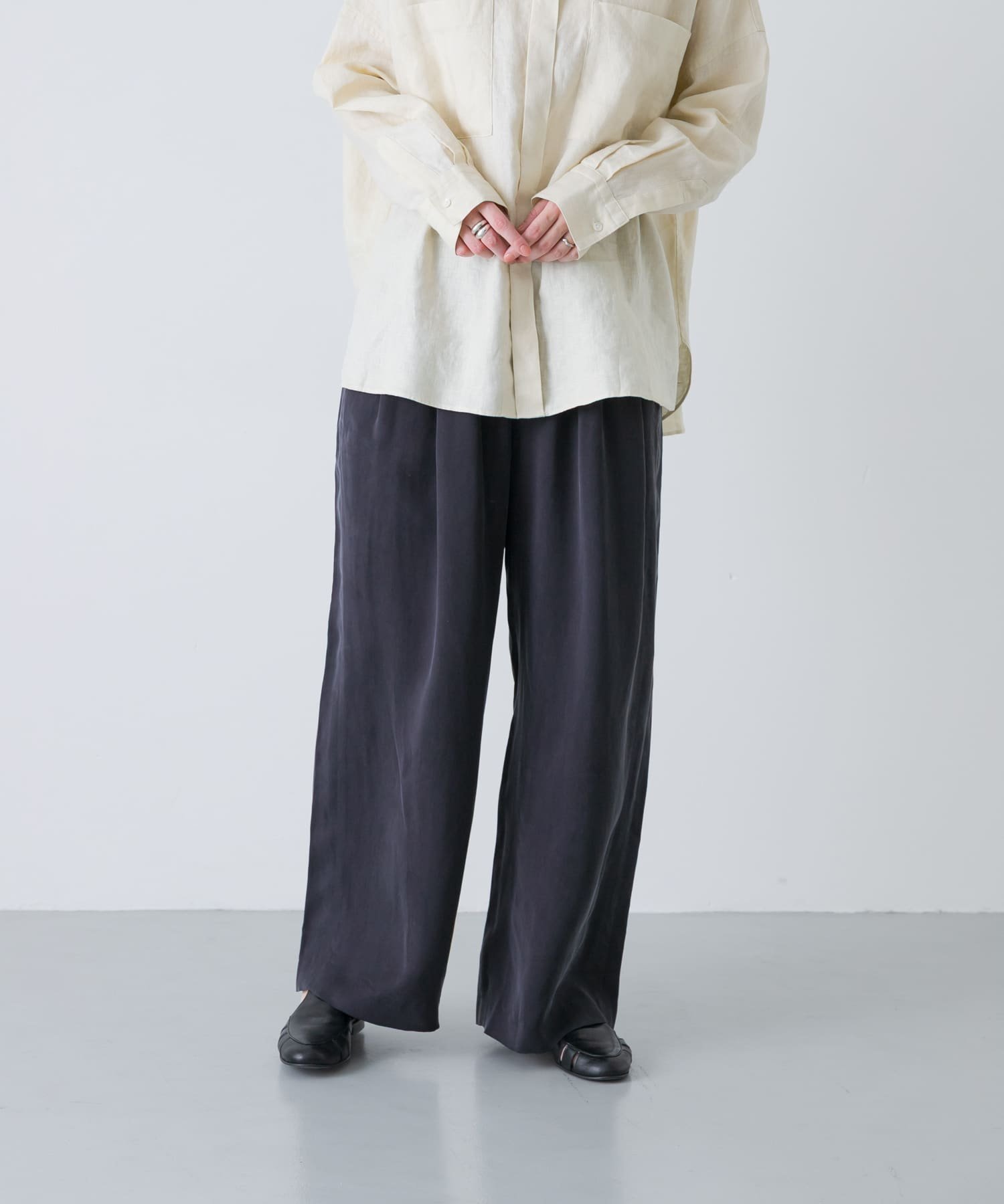 Эти удобные брюки добавят нотку утонченности любому элегантному образу. Две передние складки создают трехмерный эффект, а прямой силуэт в сочетании со струящимся материалом придает нижней части тела аккуратный вид. Ткань представляет собой идеальное сочетание мягкой, пудровой текстуры и умеренного винтажного оттенка. Нити основы плотно скручены и обработаны фибриллированной отделкой, создавая богатую текстуру. Они излучают роскошный и идеально утонченный вид. Хорошо сочетаются с повседневной одеждой и очень универсальны. Пояс полностью эластичный и имеет удобный шнурок. Рекомендуемый предмет одежды для создания как повседневного, так и элегантного образа.