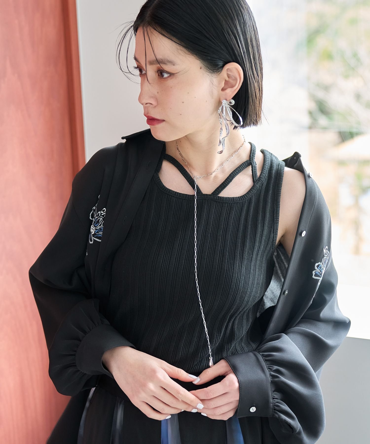 □Создана для ношения в качестве нижнего слоя под рубашкой или пуловером, с эффектными завязками