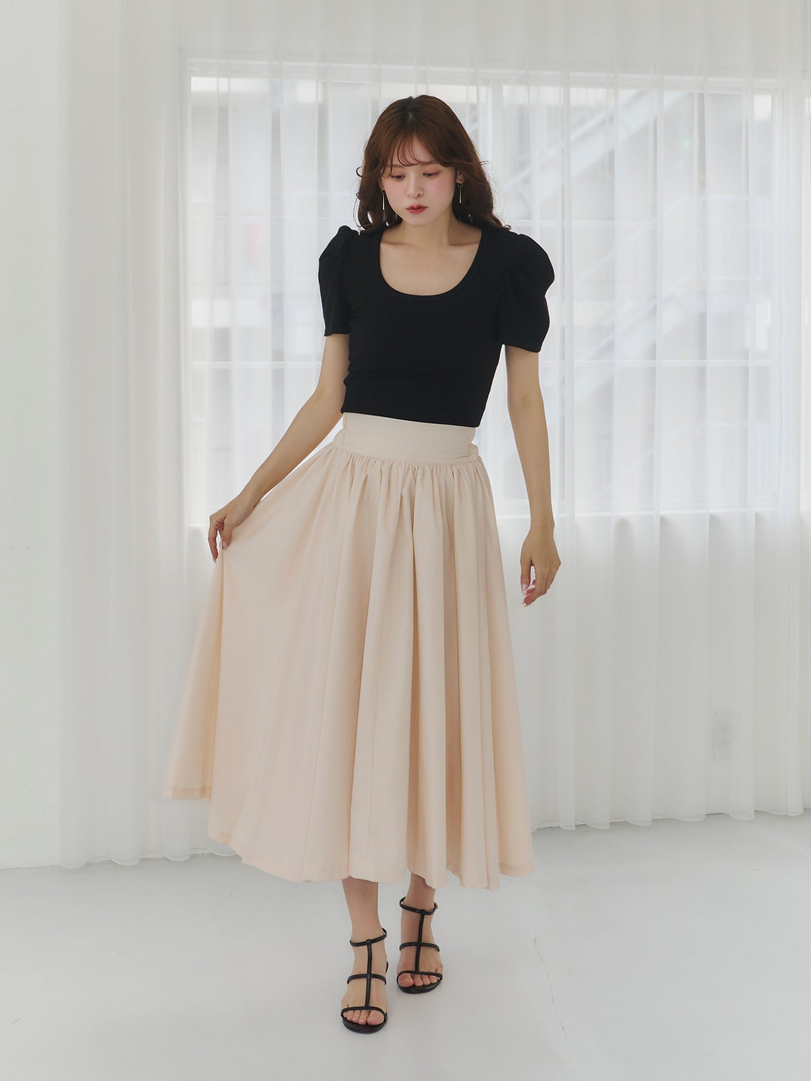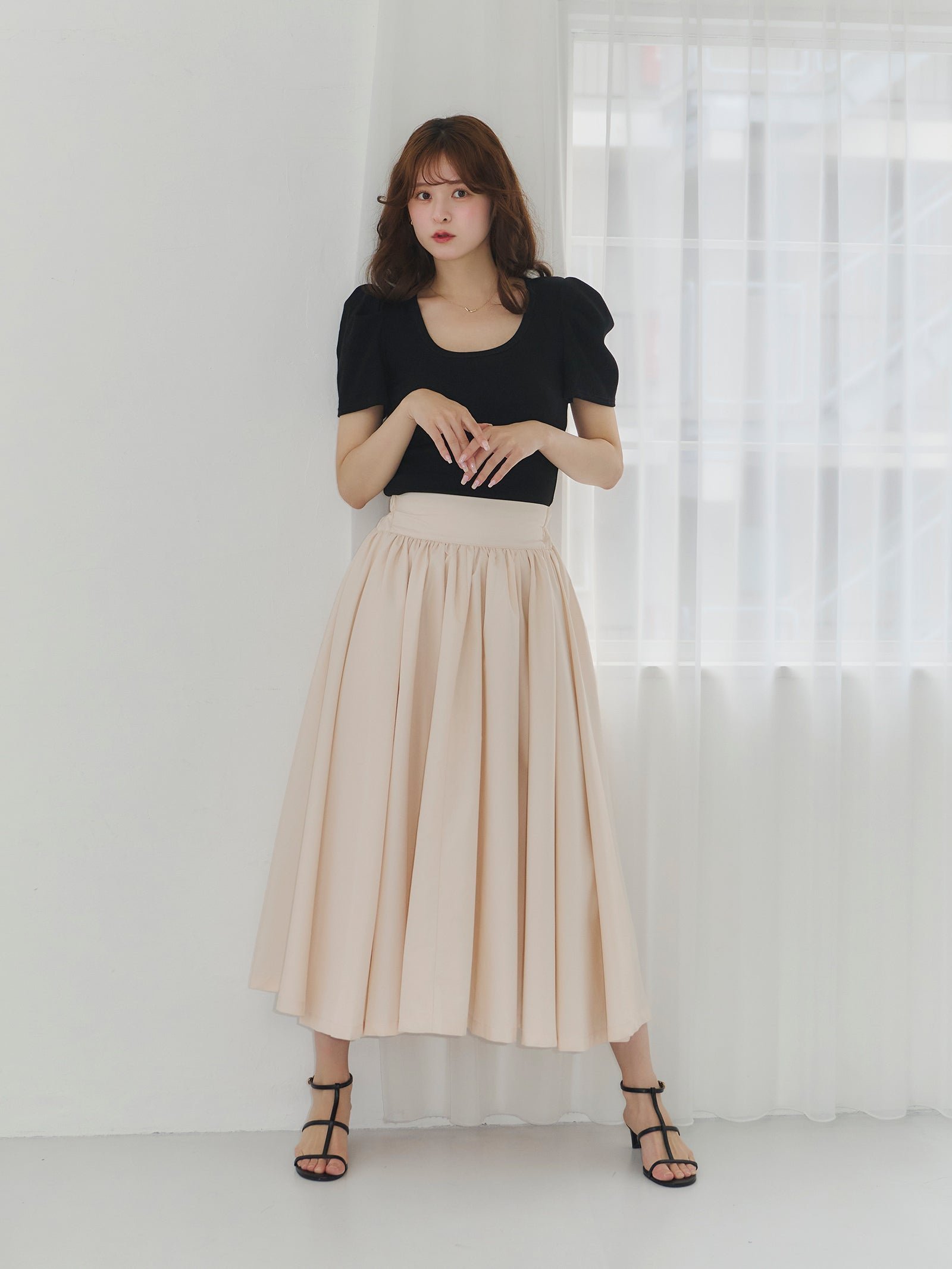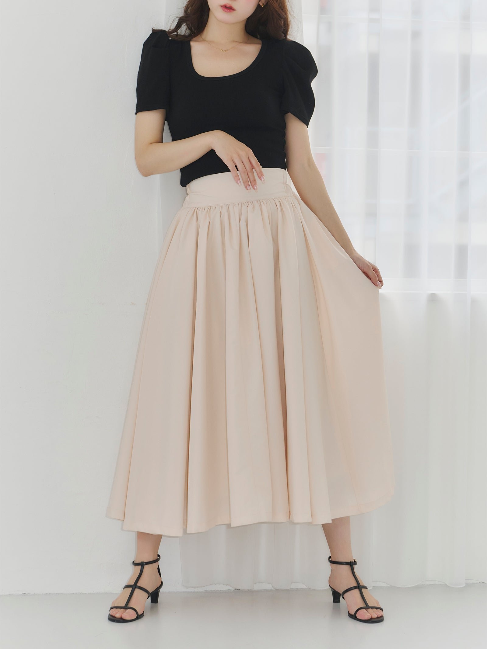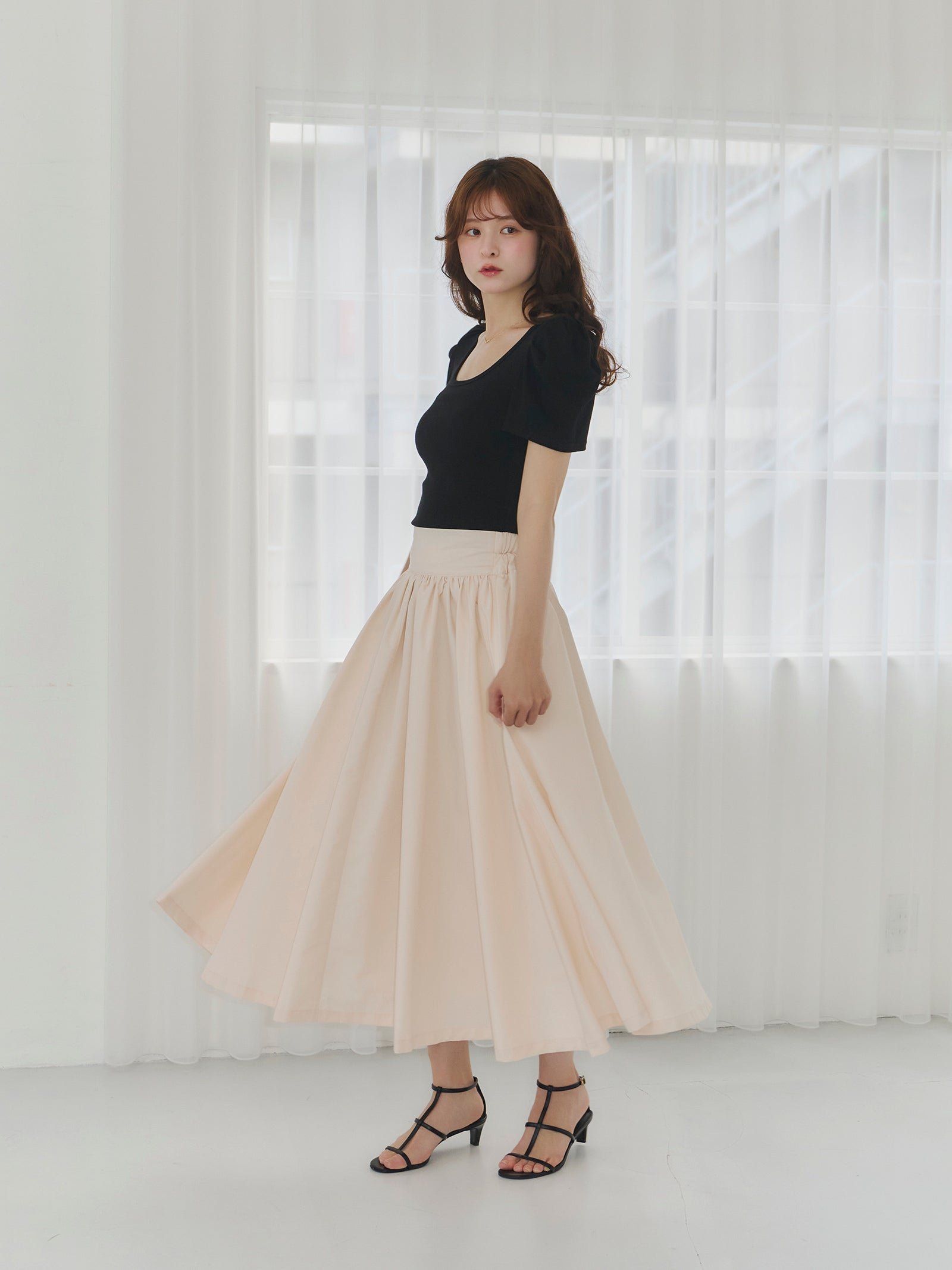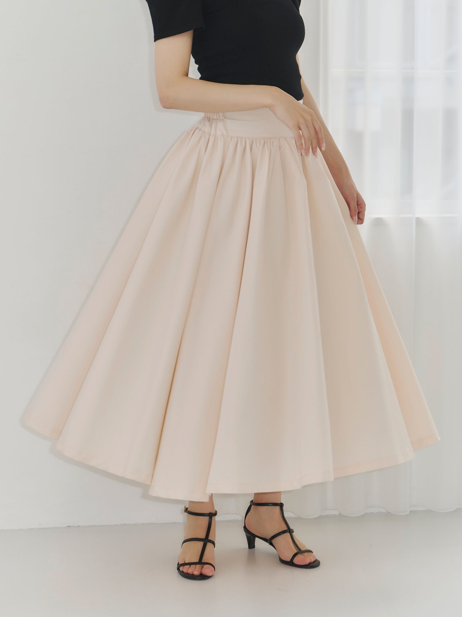 Эта юбка-солнце сшита из большого количества ткани и имеет красивый расклешенный силуэт.