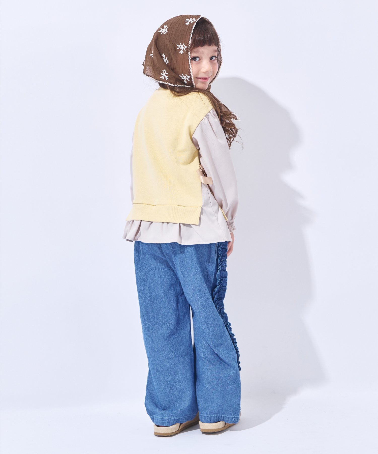 ДизайнОбъемные складки придают ему девичий видСоздает мягкий силуэт.С незавязанными лентами с обеих сторондля девичьего дизайна.Низ выполнен в стиле «докинг»!Стильный образ, дополненный всего одним комбинезоном♪